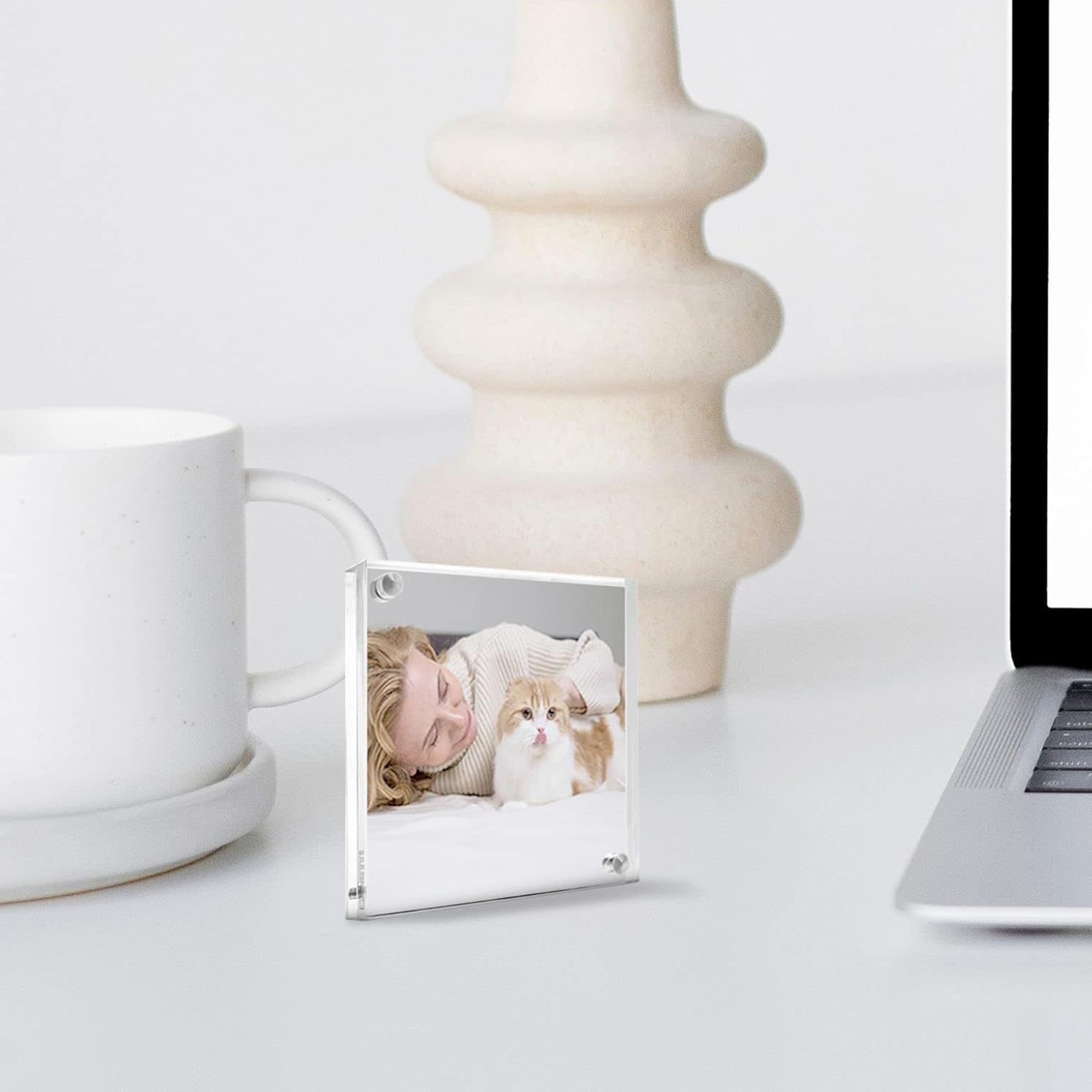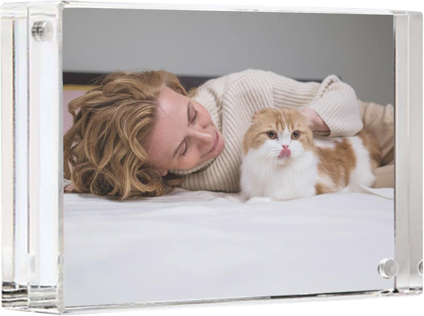 • Acrylic frame showcases two pictures or documents.