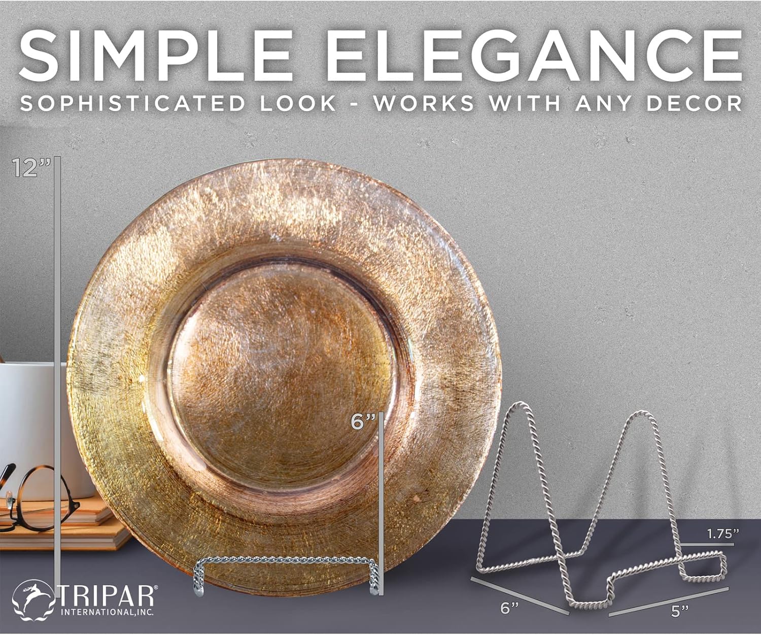 TRIPAR Decorative Twisted Wire Stand, Chrome Display (6 Inch Depth) Tabletop Easel Sleek & Modern Look - Perfect for Books, Plates, Photos & More