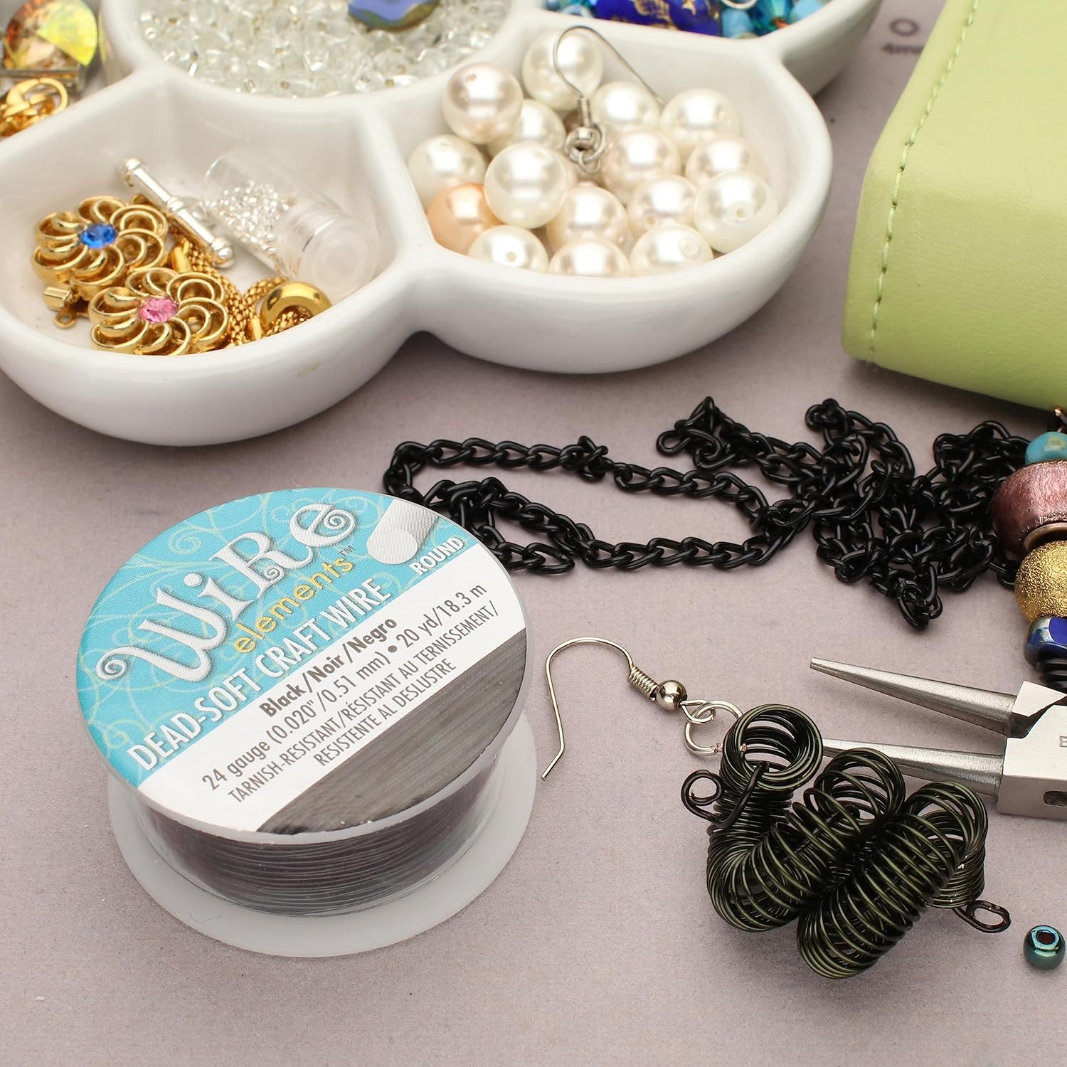 The Beadsmith Wire Elements Craft Wire – Tarnish Resistant, Soft Temper, Round, Black Color – 0.51mm, 24 Gauge, 20 Yard Spool – Jewelry Making, Wire Wrapping, Floral, & Other DIY Crafts
