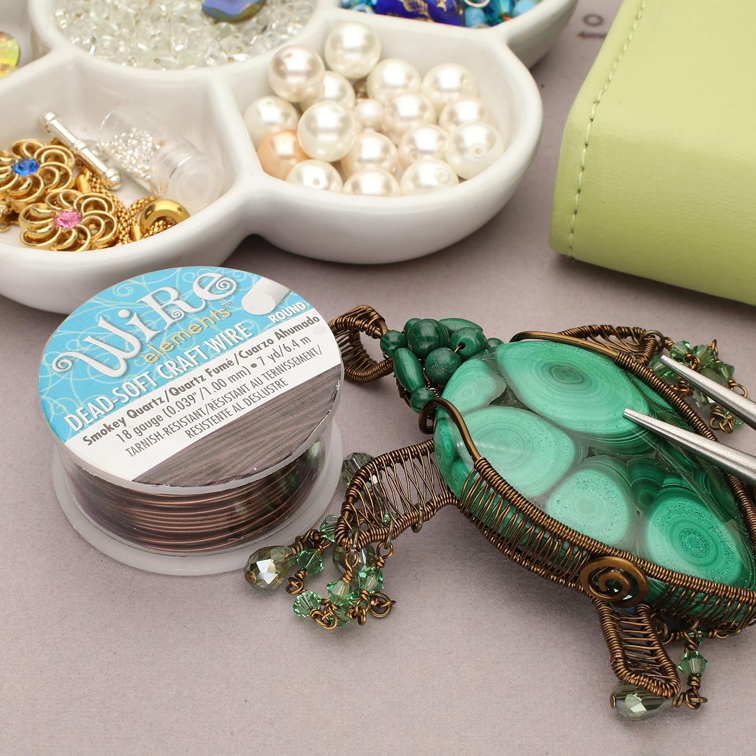 The Beadsmith Wire Elements Craft Wire – Tarnish Resistant, Soft Temper, Round, Smoke Quartz Color – 1mm, 18 Gauge, 7 Yard Spool – Jewelry Making, Wire Wrapping, Floral, & Other DIY Crafts