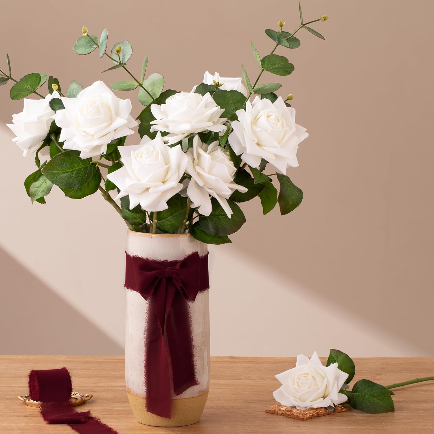 • 【Size and Color】Each roll of chiffon ribbon is 2 inches wide and 7 yards long, perfect for various creative uses such as making bows, decorating wreaths, and DIY crafts. This set includes burgundy, mauve, and pink ribbons, one roll each. These vibrant frayed ribbons add a rustic charm to your creations, ideal for bouquet wrap or gift ribbon.