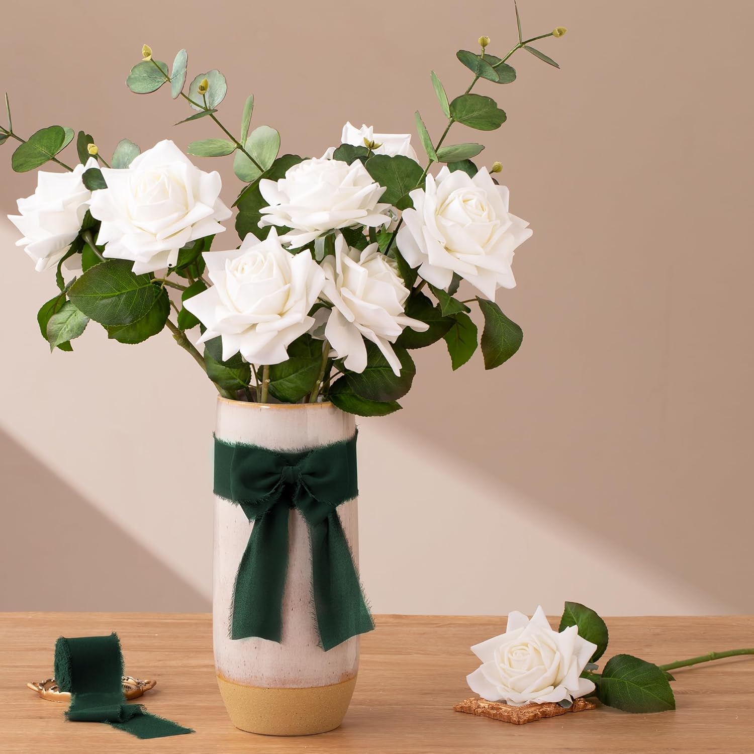 DORIS HOME 2" x21Yd Chiffon Ribbon for Flower Bouquet, Green Series Fabric Ribbon for Gift Wrapping, Handmade Frayed Ribbon for Wedding/Christmas Decorations