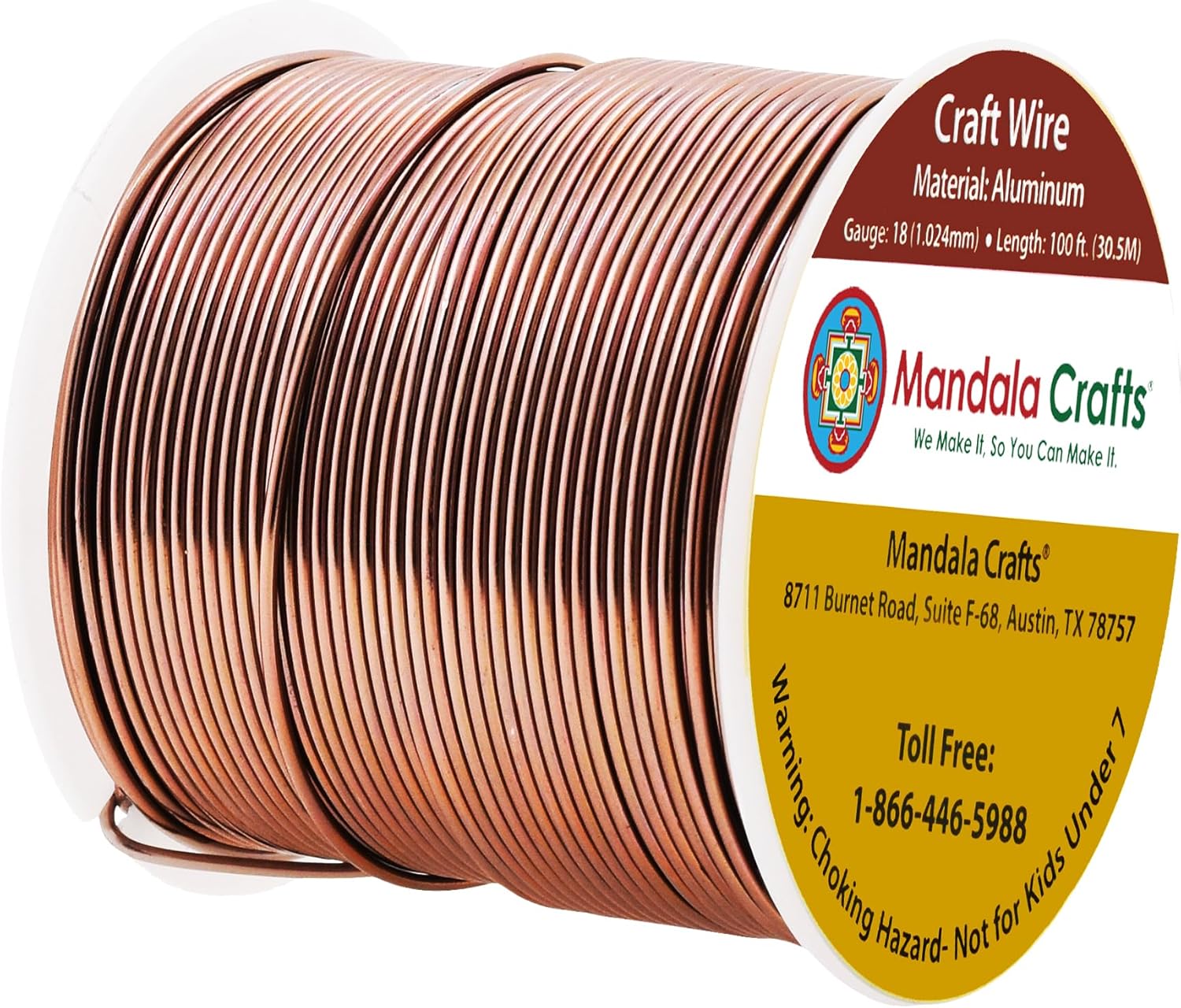 Mandala Crafts 18 Gauge Anodized Aluminum Craft Wire for Jewelry Making - 100 FT Colored Flexible Brown Wire - Bendable for Bonsai Armature Crafting Sculpting