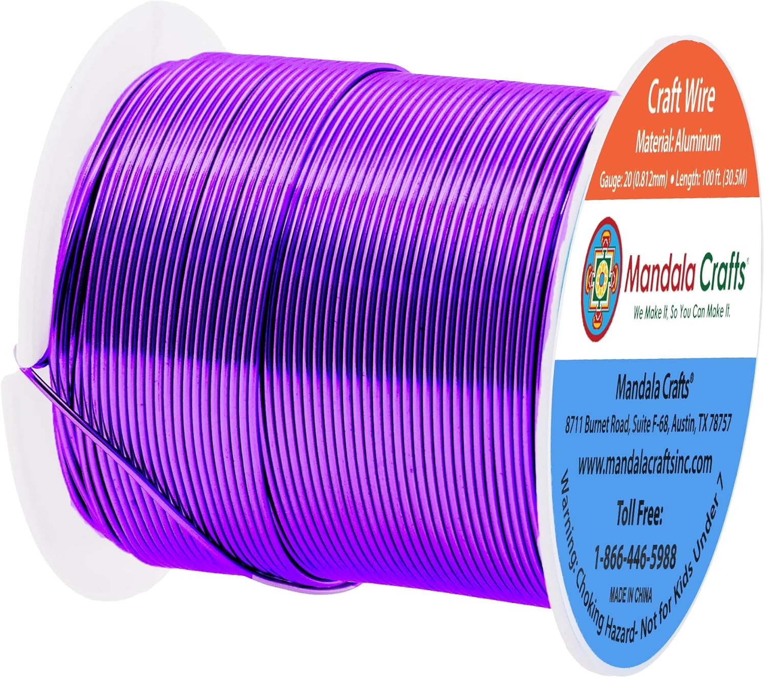 Mandala Crafts 20 Gauge Anodized Aluminum Craft Wire for Jewelry Making - 100 FT Colored Flexible Purple Wire - Bendable for Bonsai Armature Crafting Sculpting