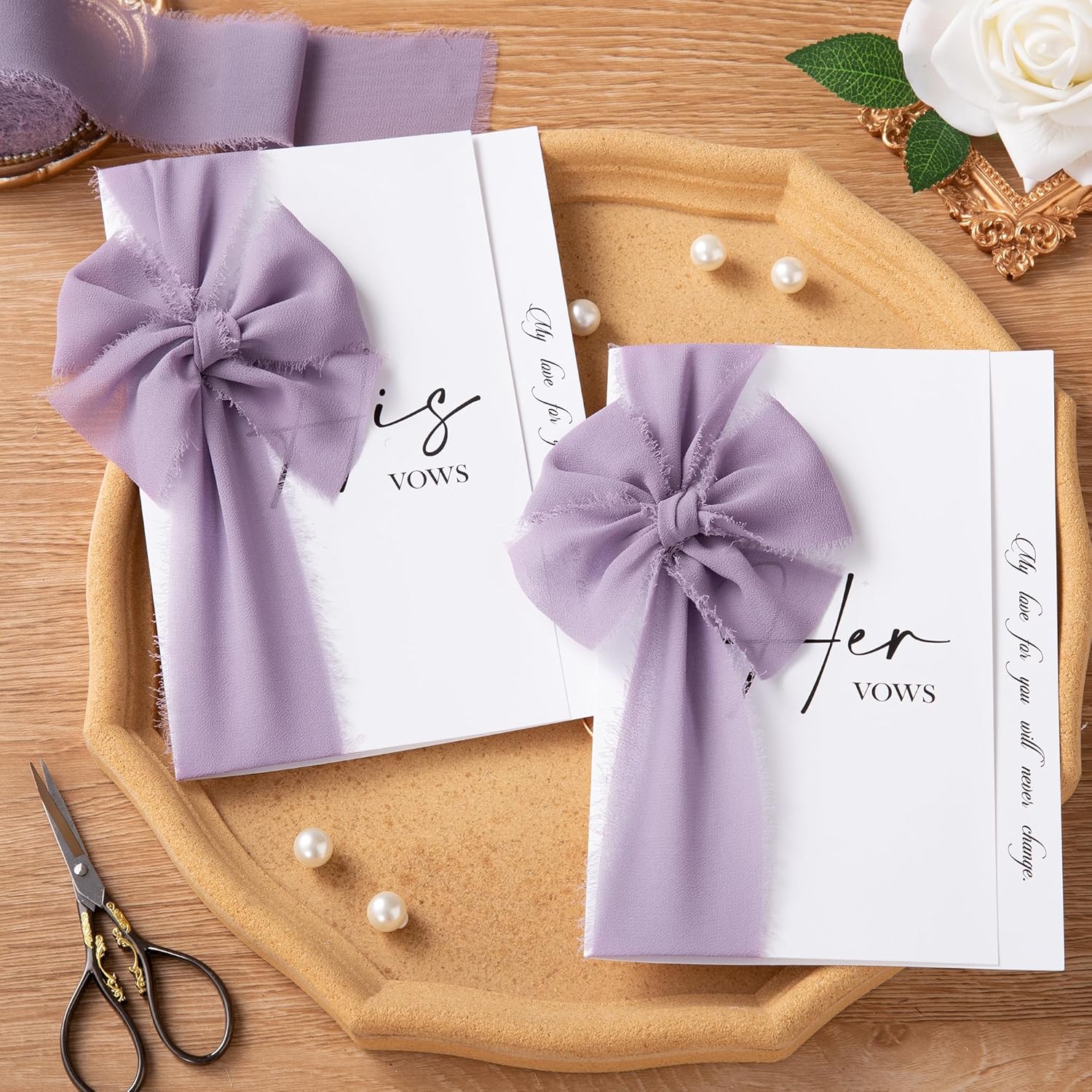 • 【Size and Color】Each roll of chiffon ribbon is 2 inches wide and 7 yards long, perfect for various creative uses such as making bows, decorating wreaths, and DIY crafts. This set includes 3 rolls pastle purple ribbons. These vibrant frayed ribbons add a rustic charm to your creations, ideal for bouquet wrap or gift ribbon.