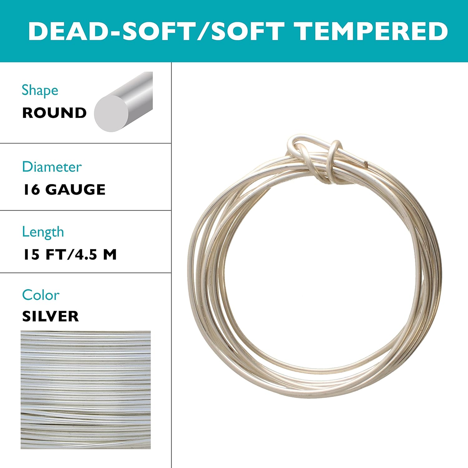 • COILS OF WIRE: This 16-gauge wire comes in a vibrant silver color, encased in a tarnish resistant coating, and measures 1.3mm (0.051 inches) in diameter. There is 15 feet of wire on this spool and comes with a clip to protect your wire when it is not in use.