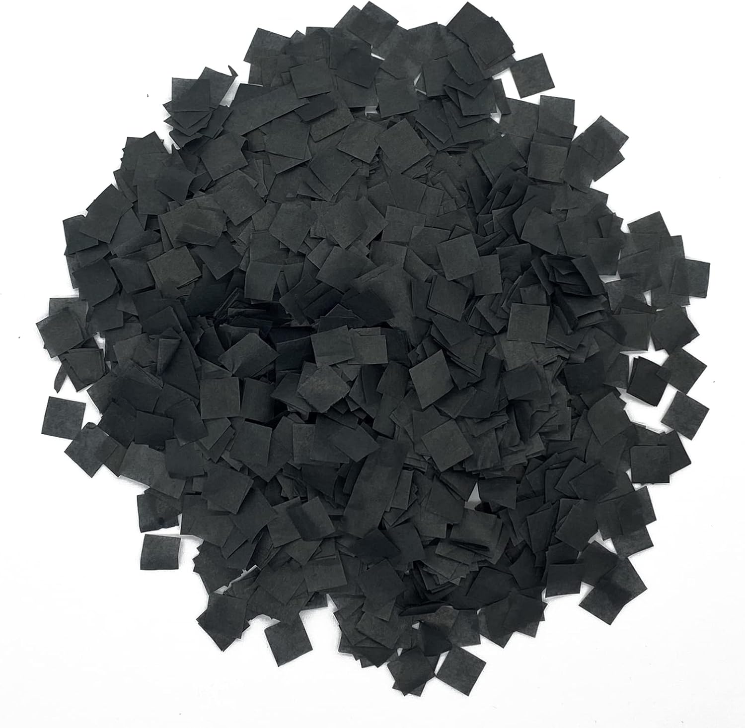 • BULK BLACK TISSUE PAPER CONFETTI - Each bag is 1 pound and includes approximately 16,000 individual pieces of confetti, or about 20 handfuls. Shorter than standard confetti, the average size of each small confetti piece is .25" x .25".