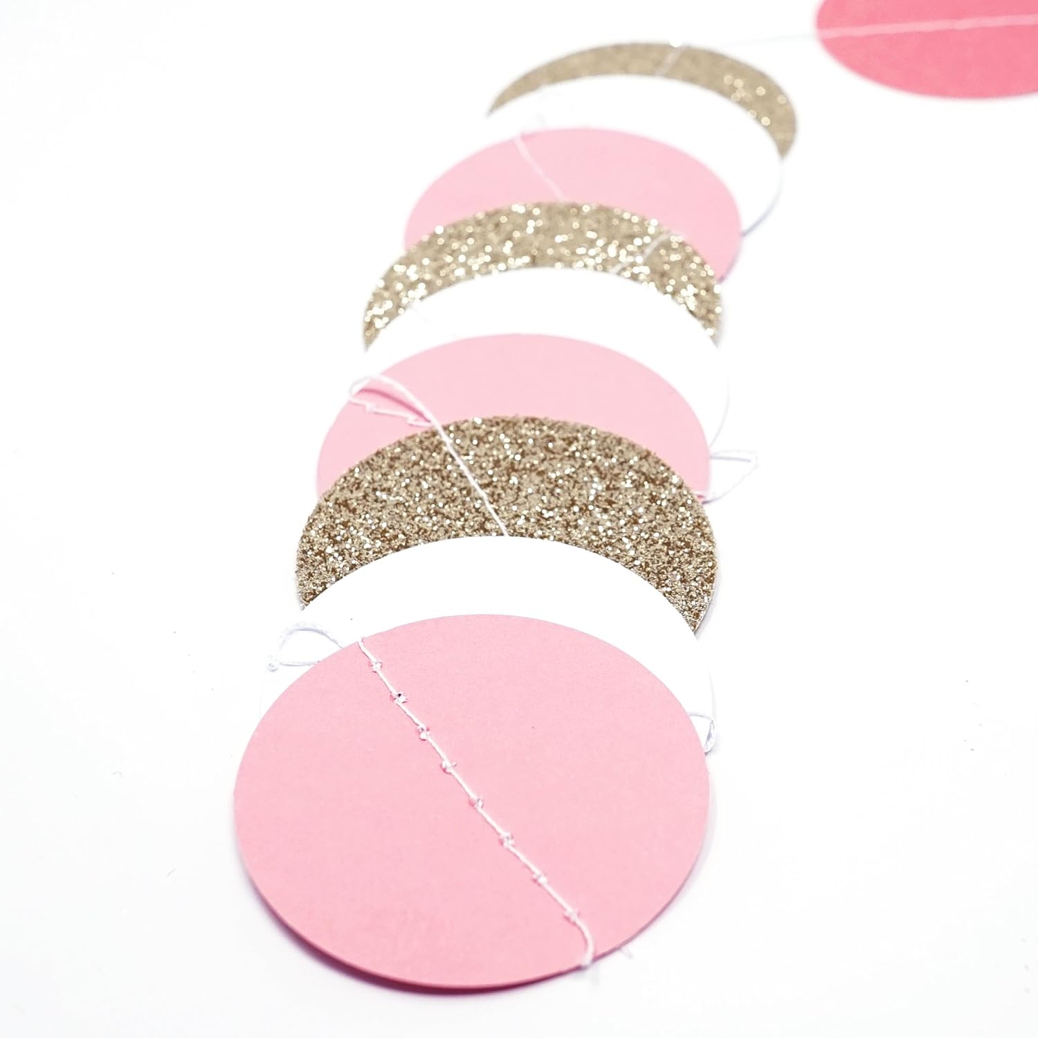 Chloe Elizabeth Circle Dots Paper Party Garland Streamer Backdrop (10 Feet Long) - Pink, White, Gold Glitter