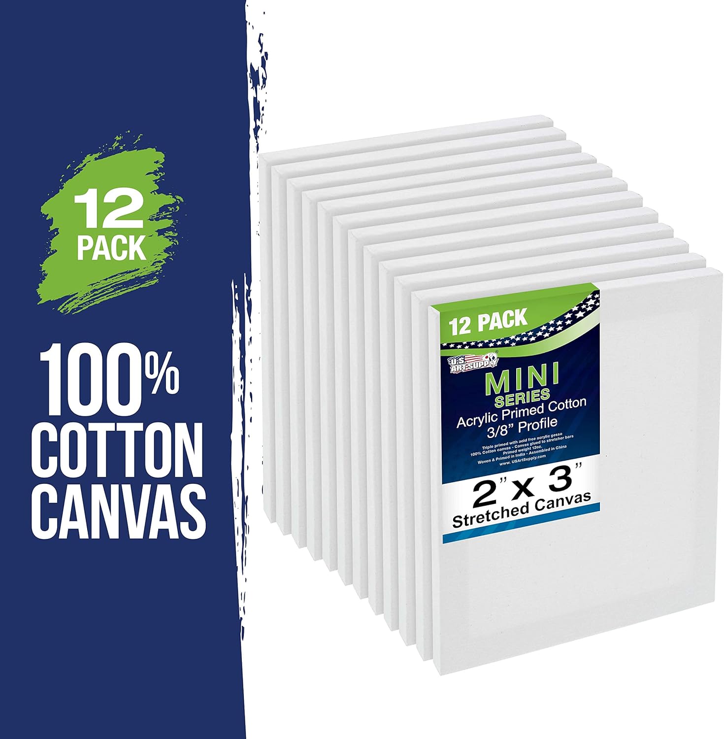 • (12 Pack) 5" Mini Easel with 2" x 3" Stretched Canvases Kit: Each kit contains a 5" natural wood tabletop easel. The kit also includes 2" x 3" stretched artist canvas with a 3/8" profile that's triple primed with acid-free acrylic gesso.