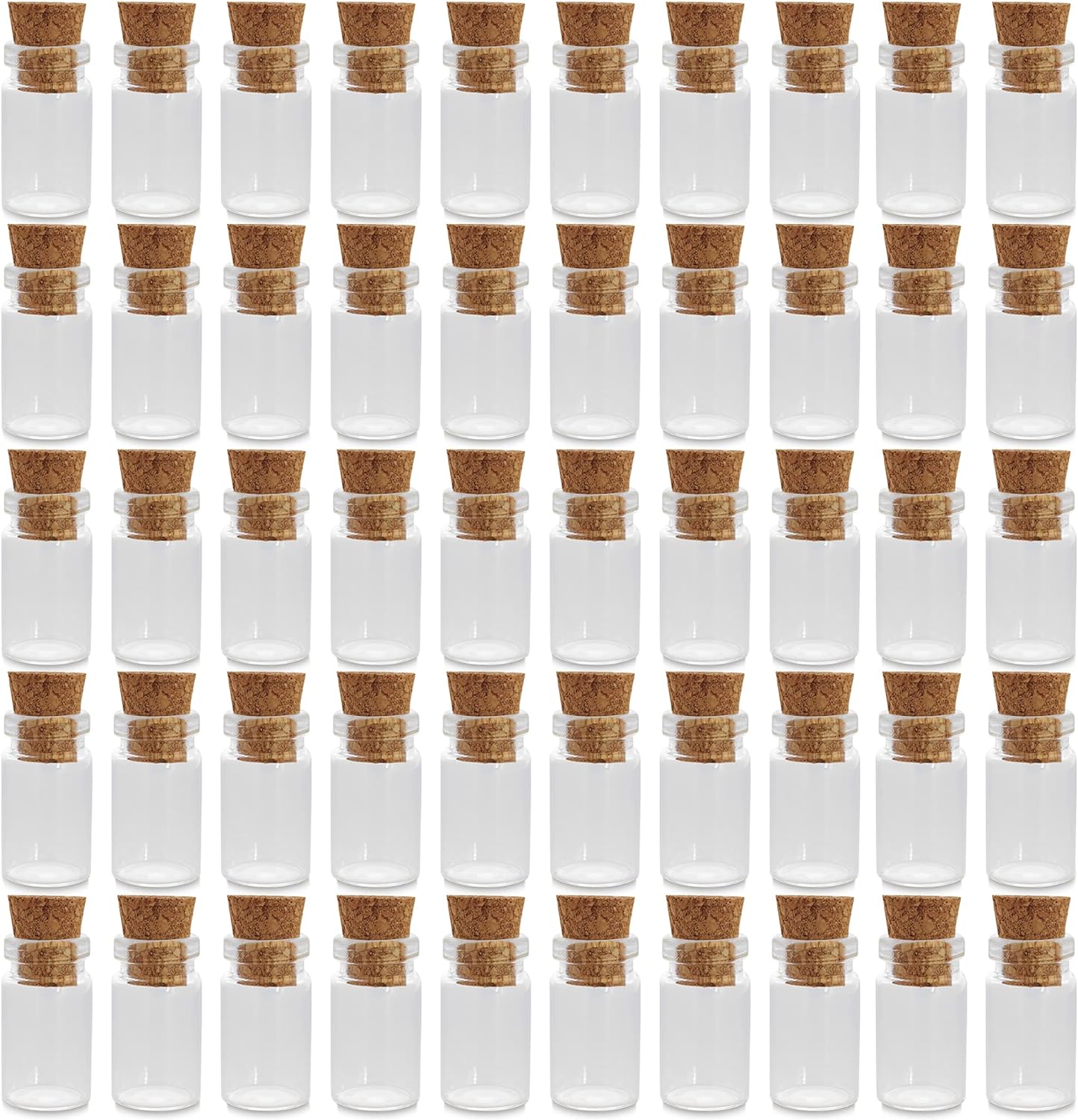 Clear Glass Jars Bottles 50 Pack Mini, Tiny, Cork Stoppers, Arts & Crafts, Projects, Decoration, Party Favors, 18mm x 10mm Diameter