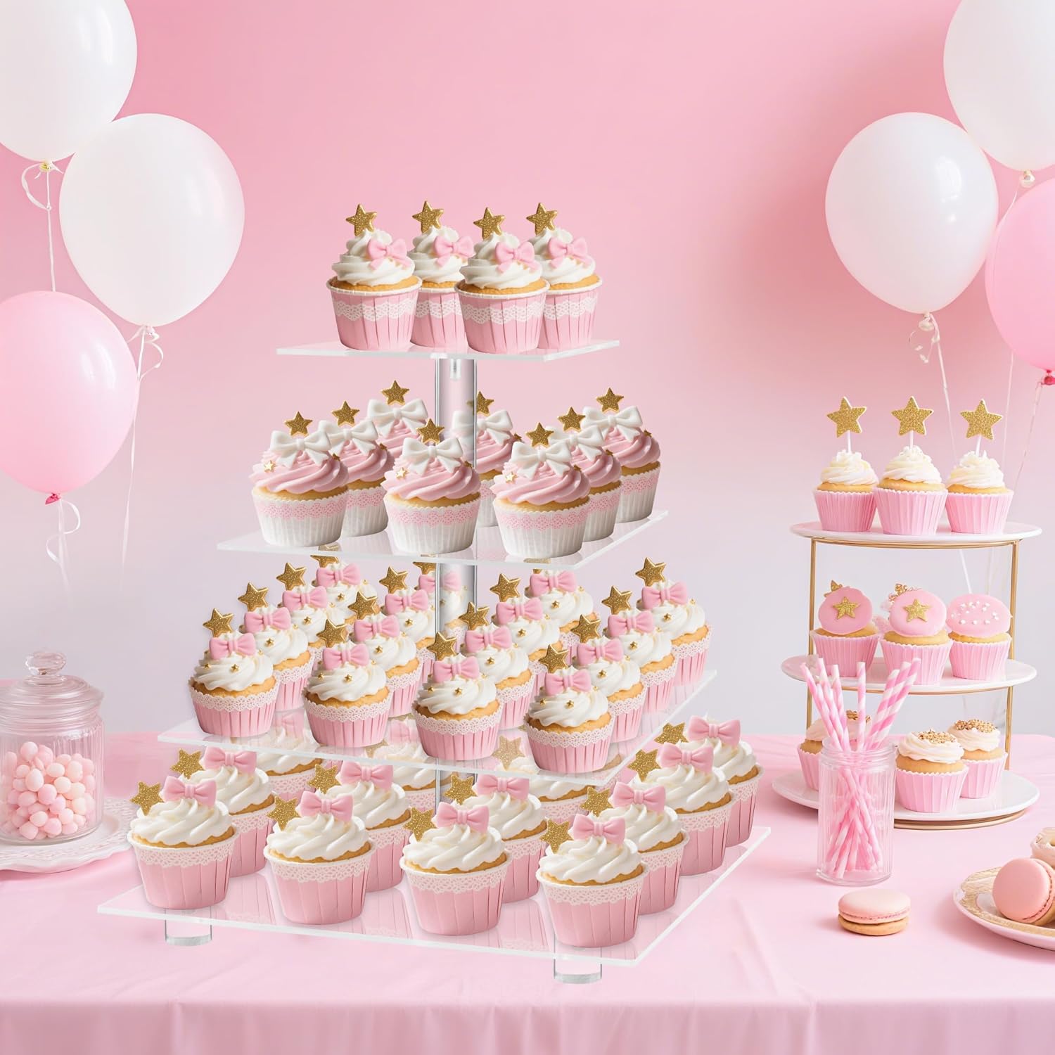 YestBuy 4 Tier Acrylic Cupcake Stand with Base, Premium Cupcake Holder, Acrylic Cupcake Tower Display Cady Bar Party Décor – Display for Pastry(4.7" Between 2 Layers)…