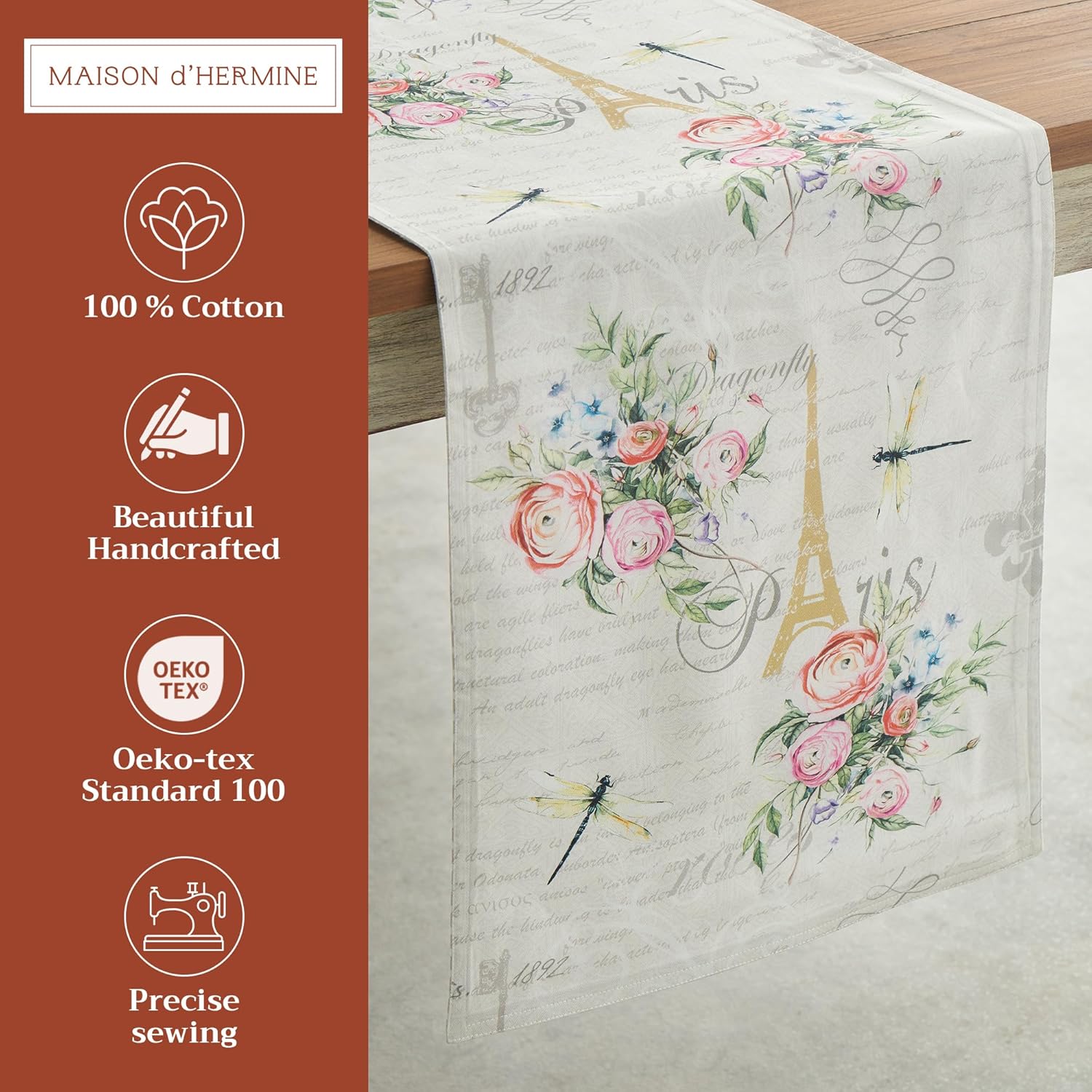 Maison d' Hermine Table Runner 100% Cotton Double Layer Table Runners 72 inches Long Decorative for Home Kitchen Dining Party Wedding Bridal Shower Spring Summer (Champ De Mars, 14.50" x 72")