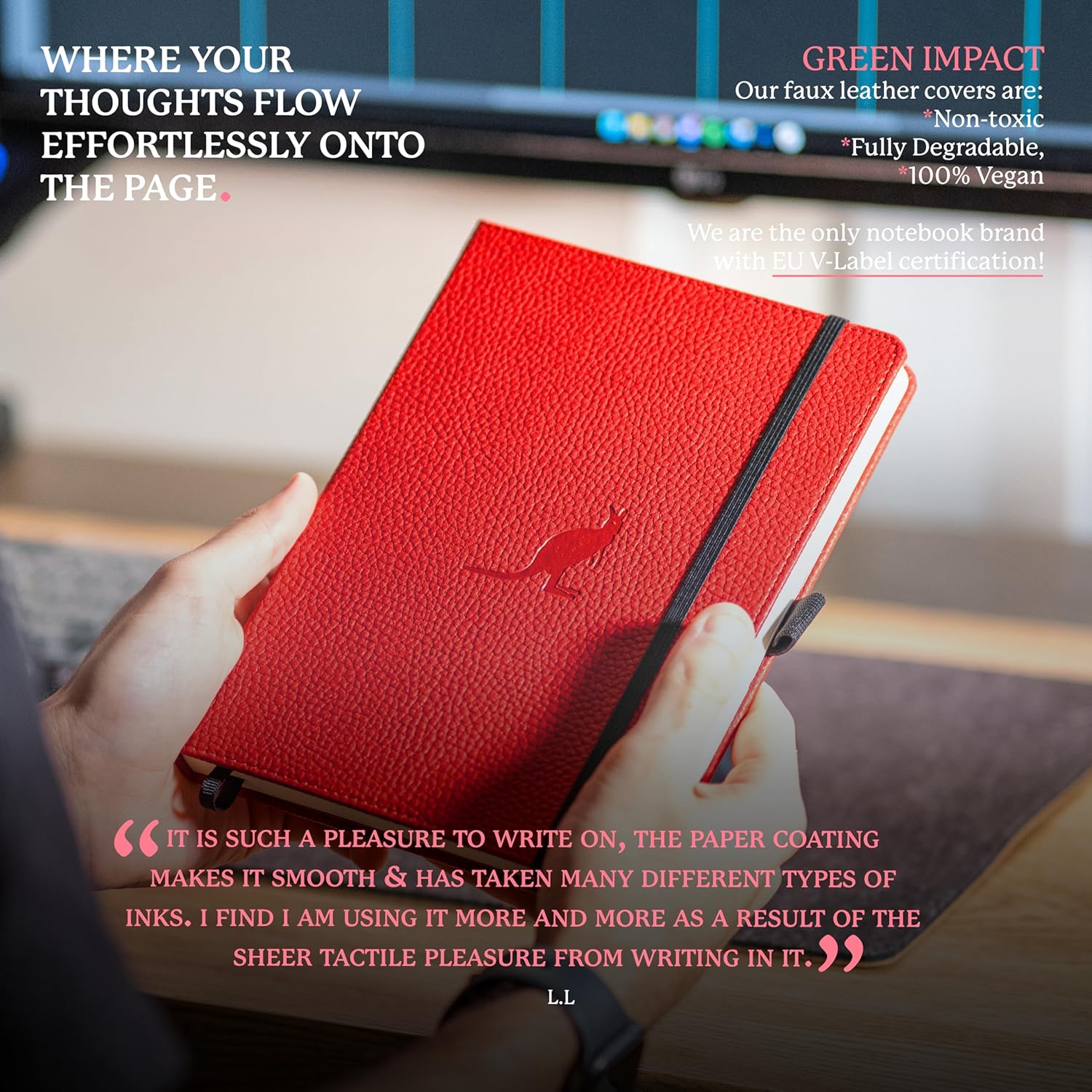 • CRAFTED FOR QUALITY: A hardcover PU vegan leather notebook with micro-perforated cream 100gsm pages. Features an elastic closure, inner pocket, built-in bookmark, and pen holder for organized, convenient, and stylish note-taking anywhere.