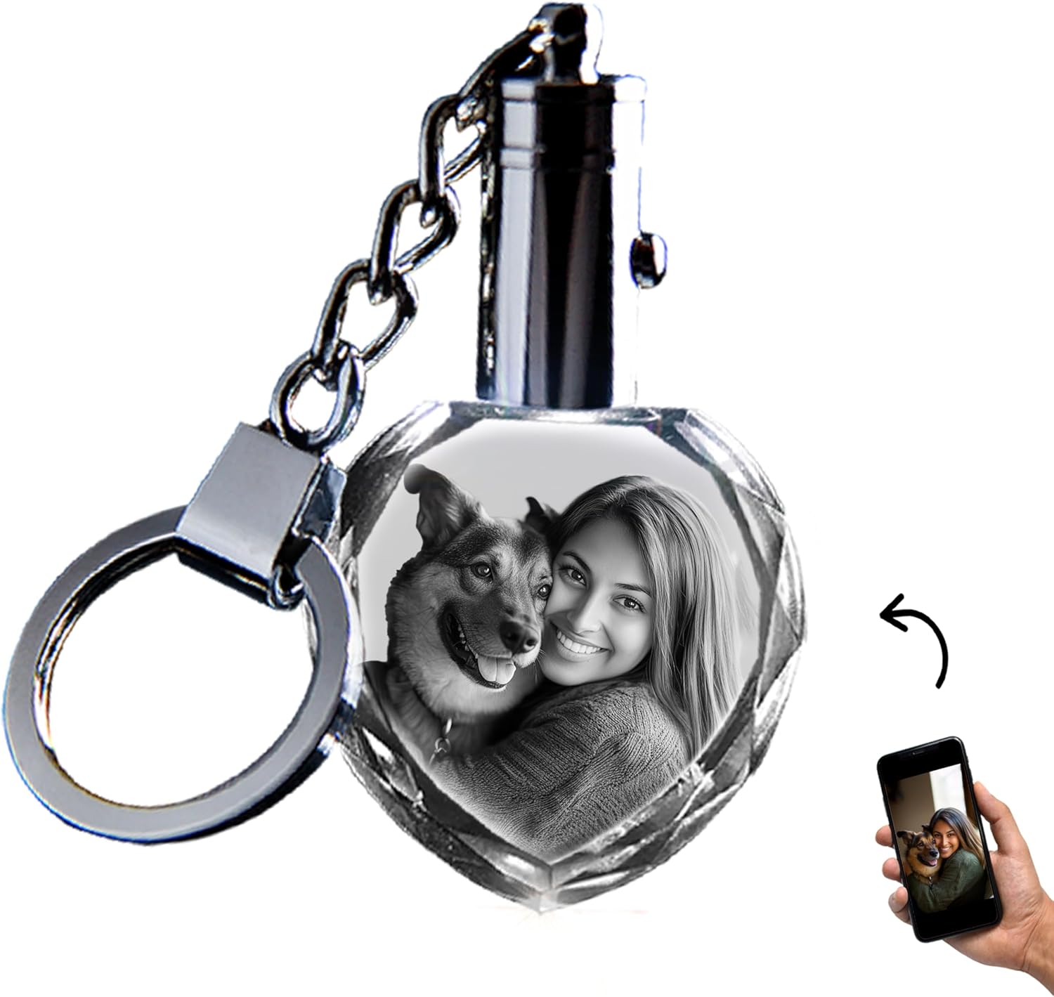 • Enhanced LED Light Feature: Each custom crystal photo keychain comes with a built-in LED light, illuminating the intricate details of your engraving with a soft glow. Simply press the button to bring your photo to life, even in low-light settings. Watch your crystal engraving come to life with a soft glow.