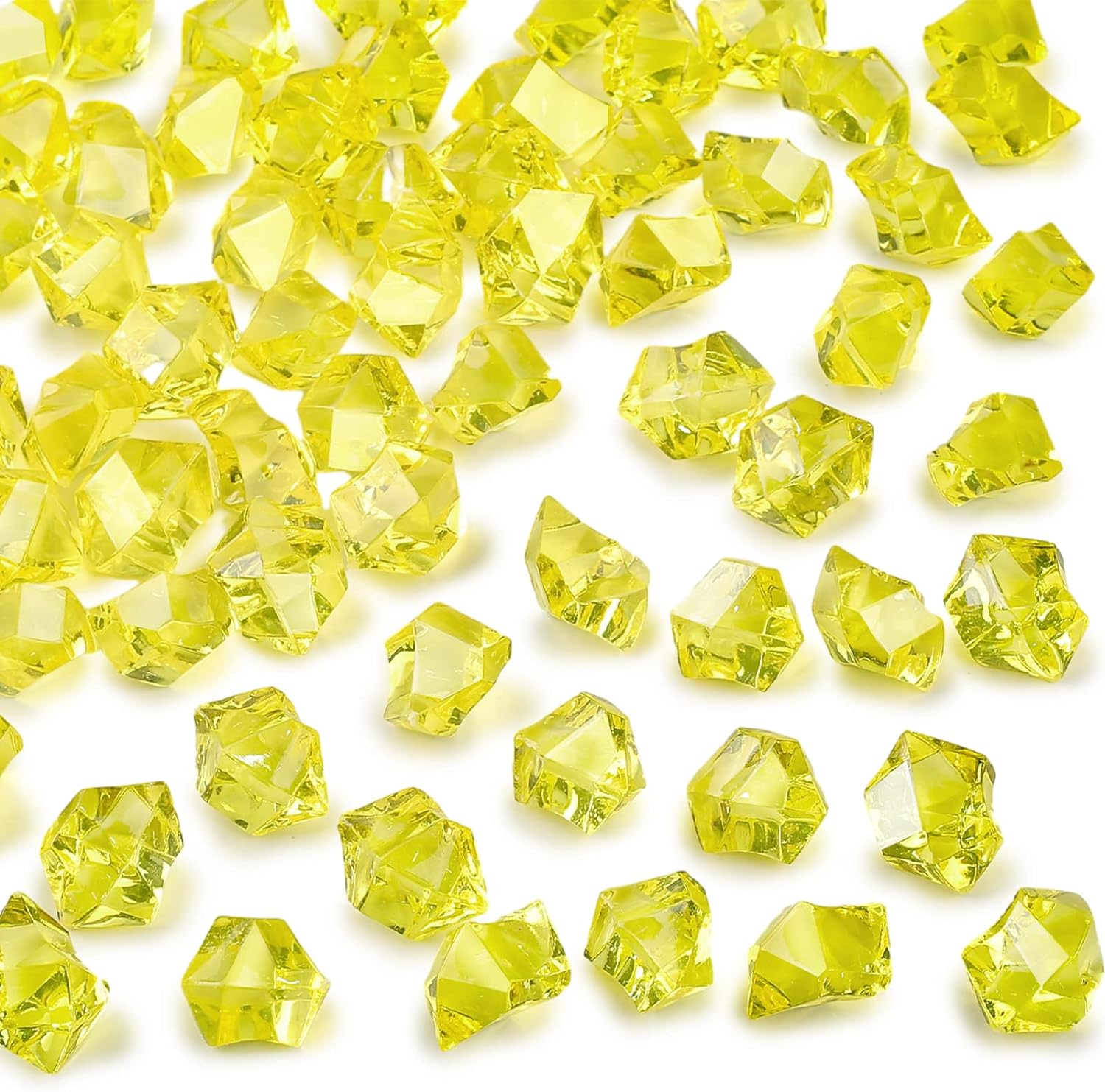 DomeStar Yellow Fake Ice Rocks, 150PCS Acrylic Gems Crystals Plastic Diamonds Fake Ice Cubes for Vase Fillers DIY Craft Wedding Photography Prop Display Table Scatter Home Amalfi Coast Decorations