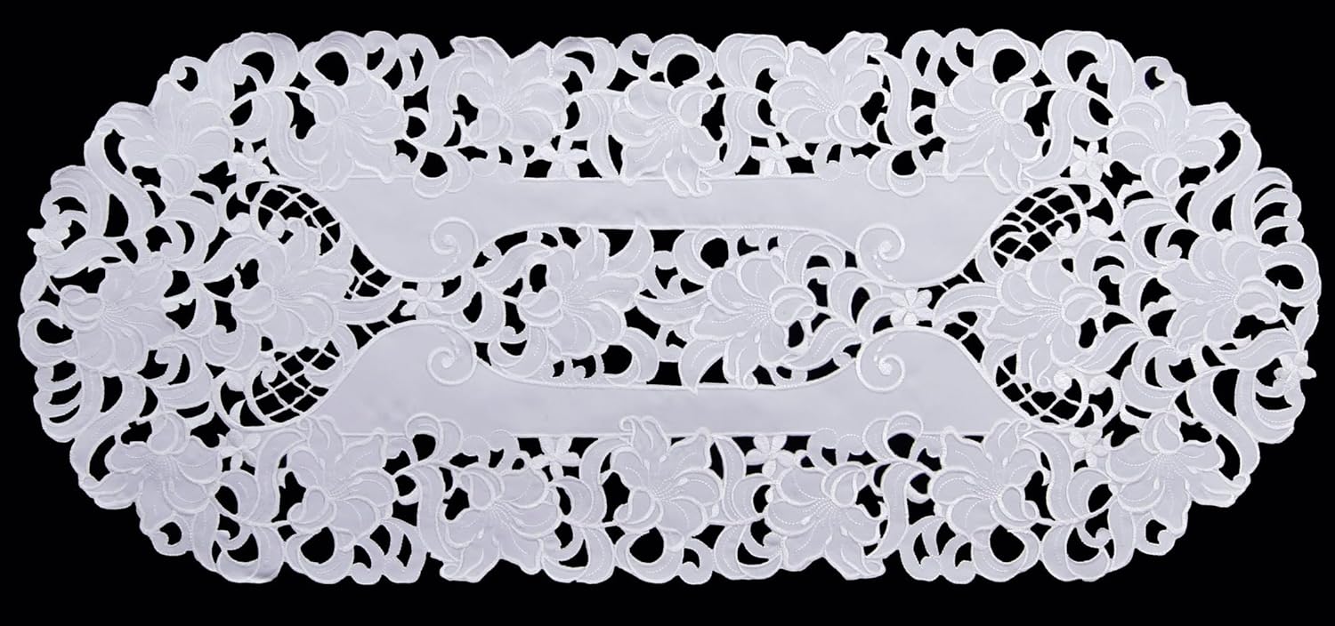 Creative Linens Embroidered Floral Table Runner 15x35 Oval Dresser Scarf White