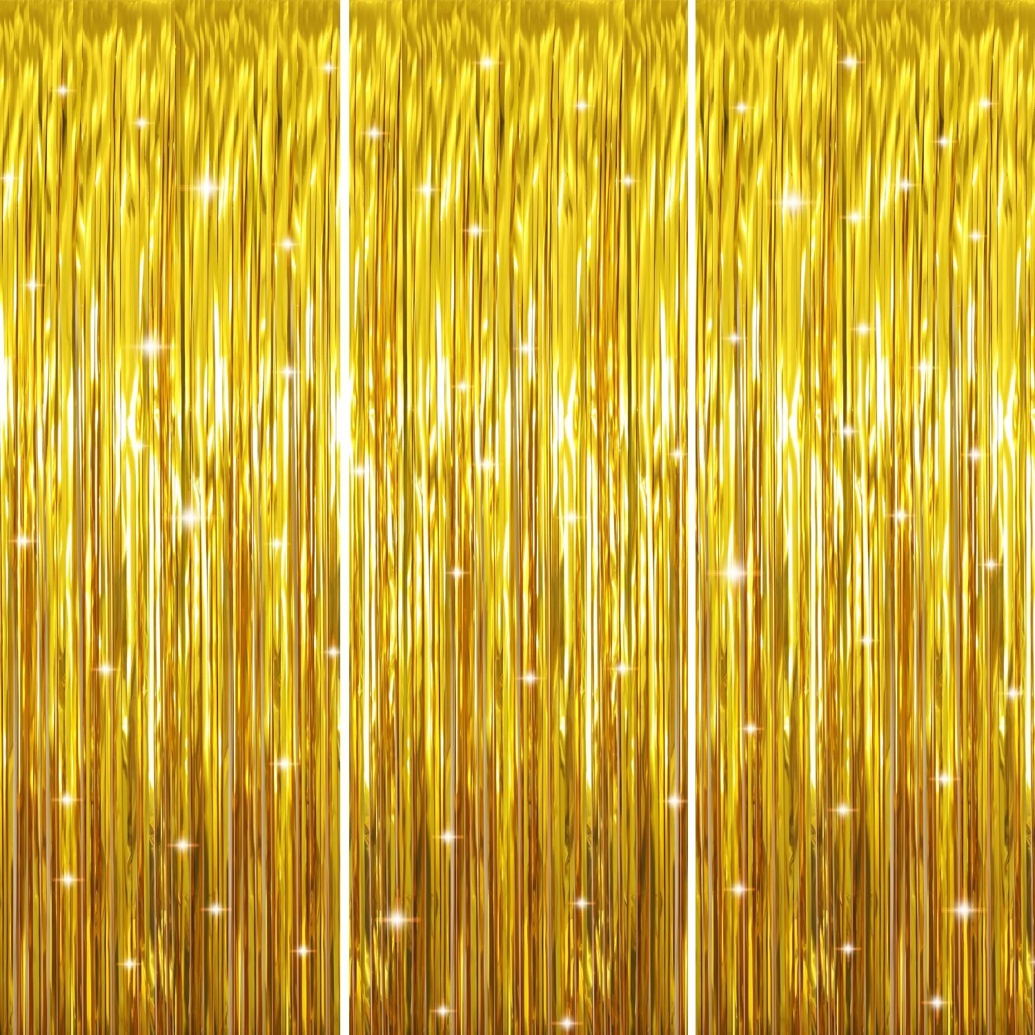 • Package Includes:3 pack gold foil fringe curtains,3.2 ft x9.8 ft each,suitable for hanging on a door or coverage a wall fully
