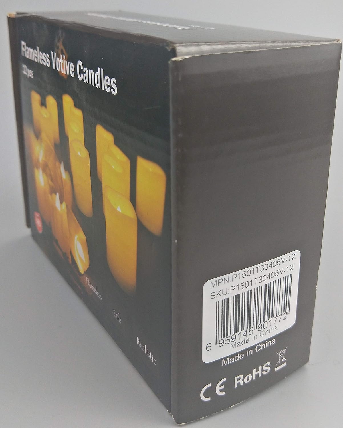 • Long lasting battery candles. 200 glowing hours on one CR2032 button cell is among the longest battery life in the market. With the energy saving technology, the LED tealight /votive candles give off bright light on minimum battery consumption. No real wax votives and tea lights have such a long “burning” time.