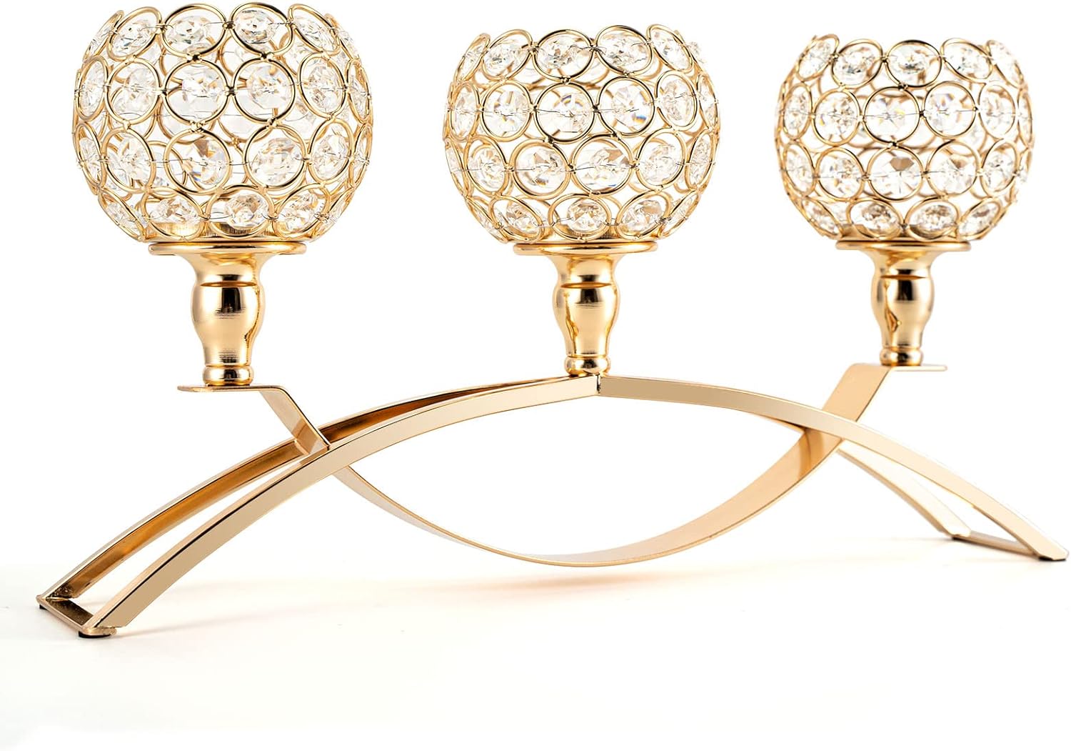 VINCIGANT Candle Stick Holder Decor Gold Candle Holders for Wedding,3-Candle Candelabras for Christmas Party Dinning Room Table Centerpiece,Gift Boxed for Thanksgiving