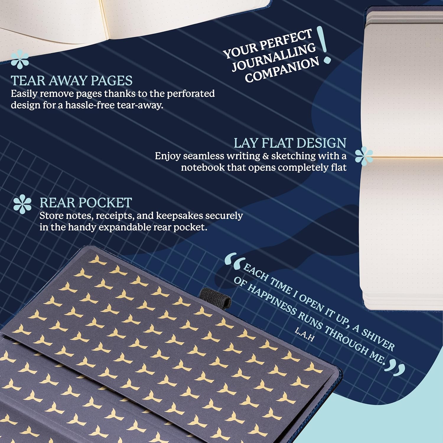 • LOTS O' FEATURES: Durable hardcover bound with PU faux leather, round corners, animal footprint endsheets, micro-perforated 100gsm cream pages, inner pocket, bookmark, a lay flat design and elastic closure. Also includes a pen holder - perfect.