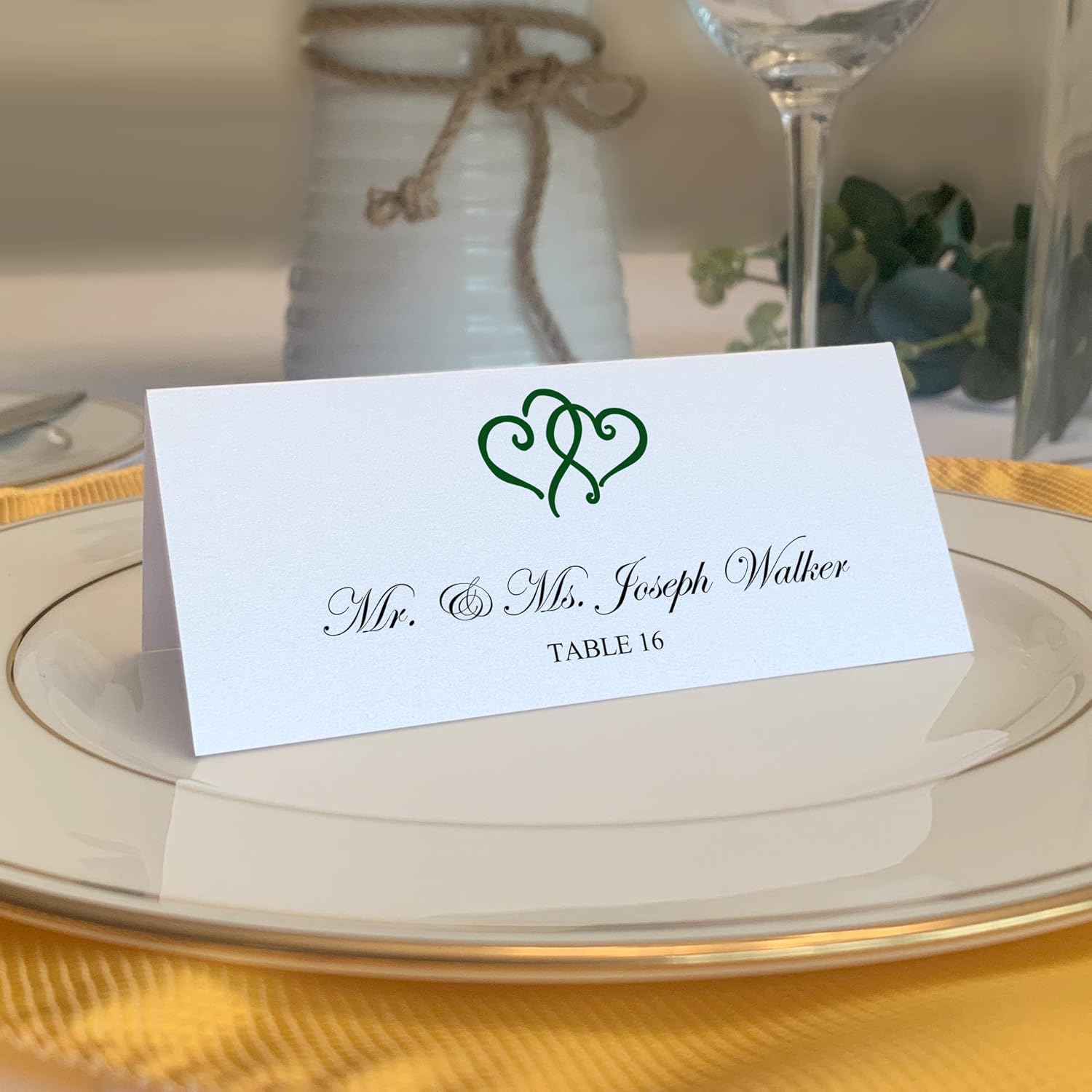 Linked Hearts Printable Place Cards, Hunter Green (Choose Color), Set of 60 (10 Sheets), Laser & Inkjet Printers - Wedding, Party, Dinner, and Special Events - Made in the USA
