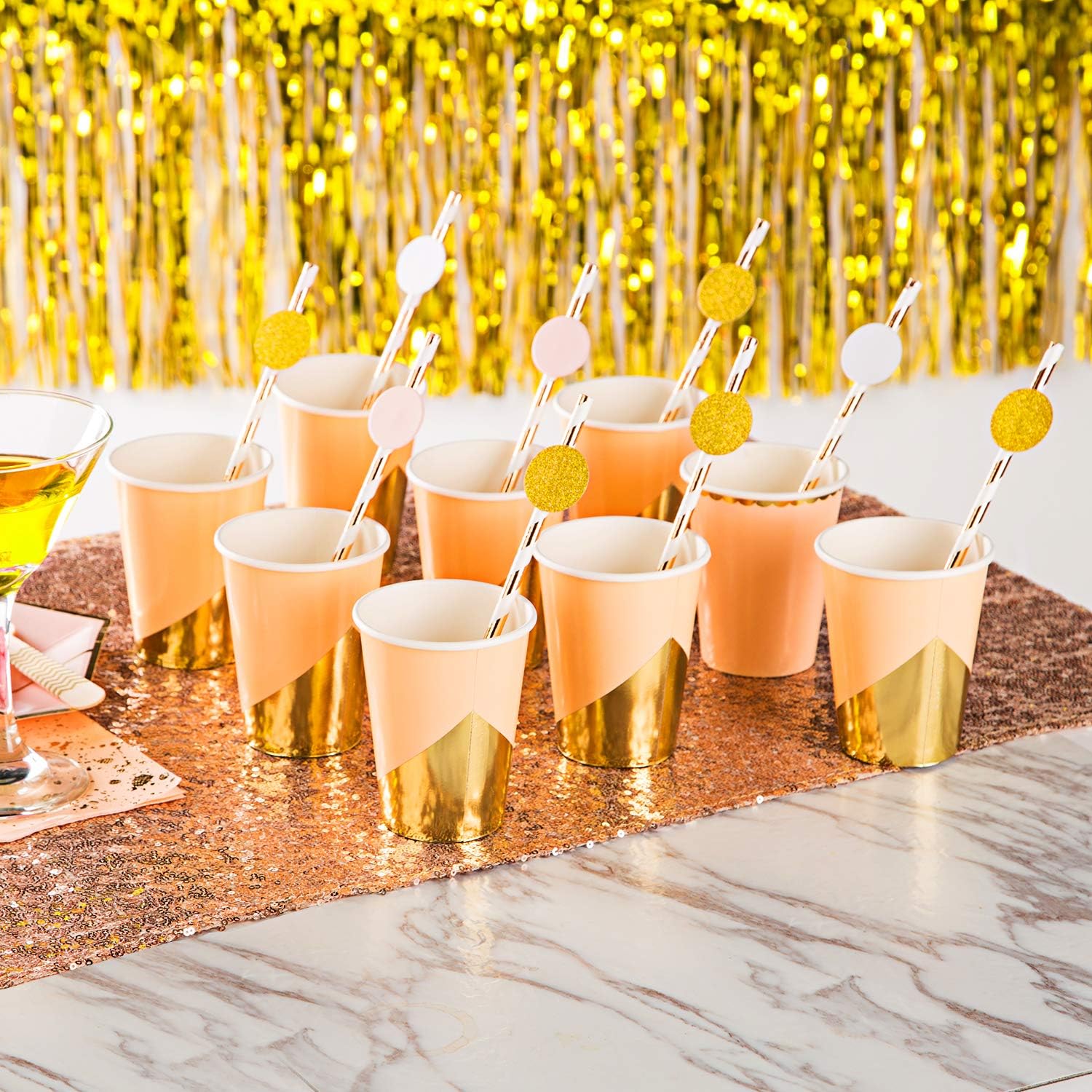 MOWO Confetti Circles Wedding Party Decor and Table Decor, 1.2’’ in Diameter (glitter gold pink and white mix,200pc)