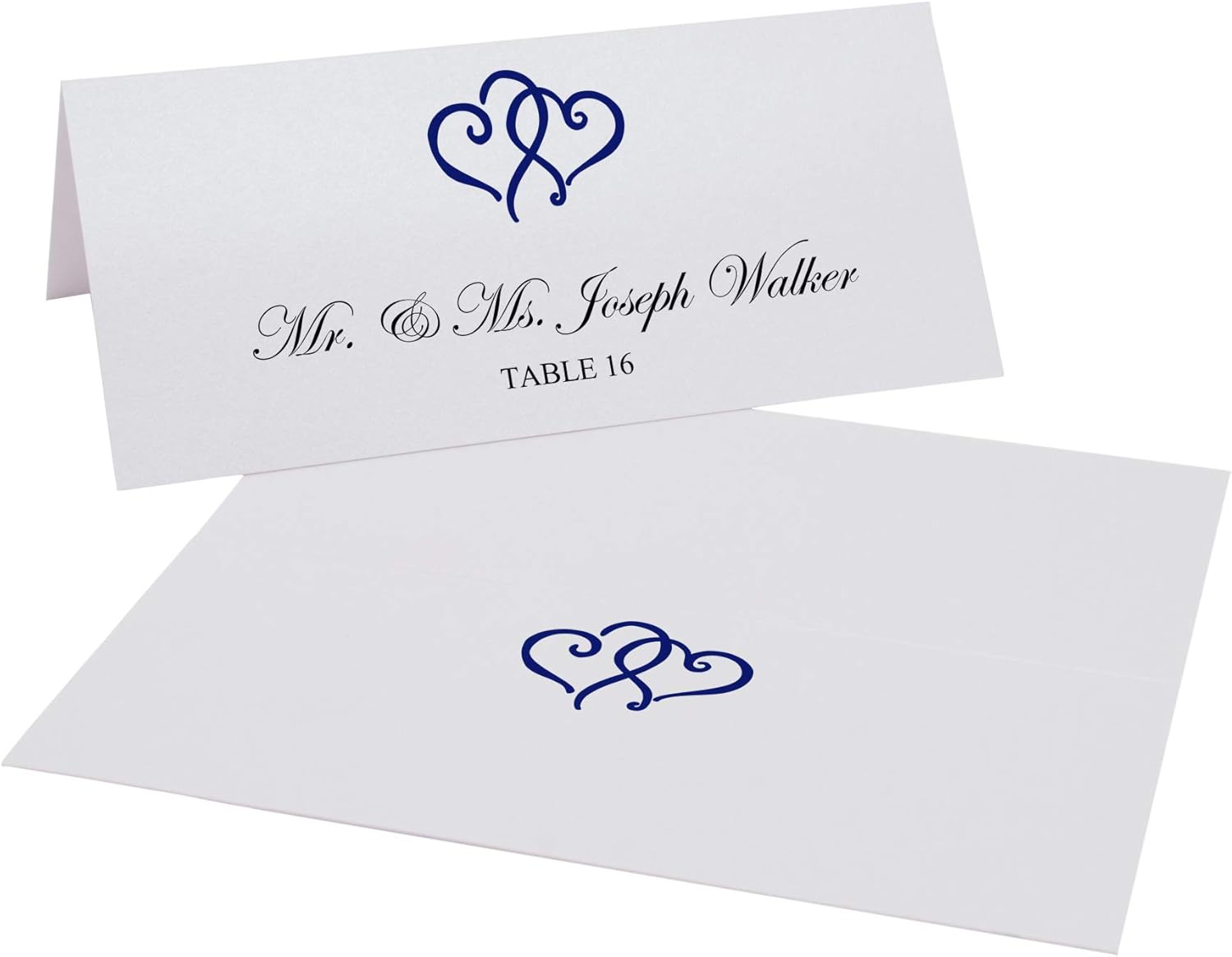 Linked Hearts Printable Place Cards, Navy (Choose Color), Set of 60 (10 Sheets), Laser & Inkjet Printers - Wedding, Party, Dinner, and Special Events - Made in the USA