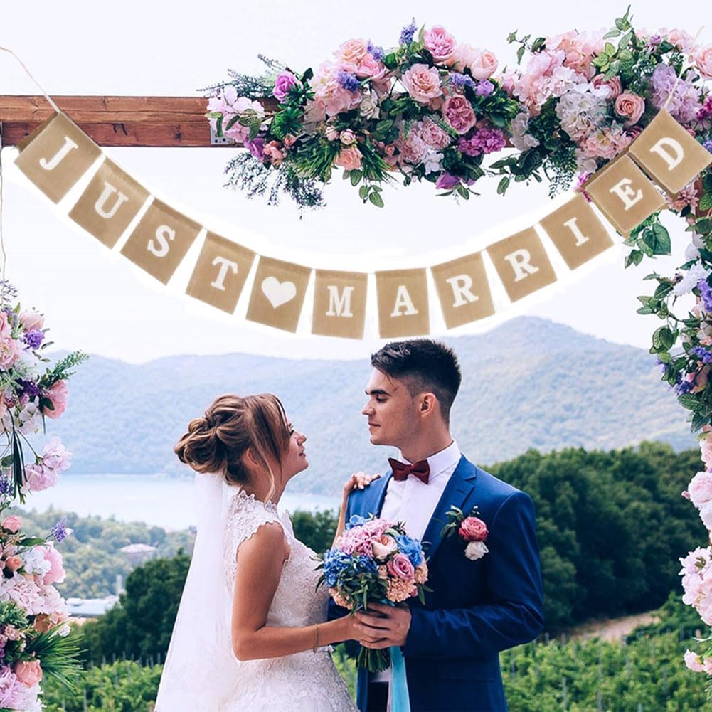 • Rustic Wedding Decor: The burlap banner features a beautiful white "Just Married" text, creating a charming and elegant rustic wedding decor for your special day.
