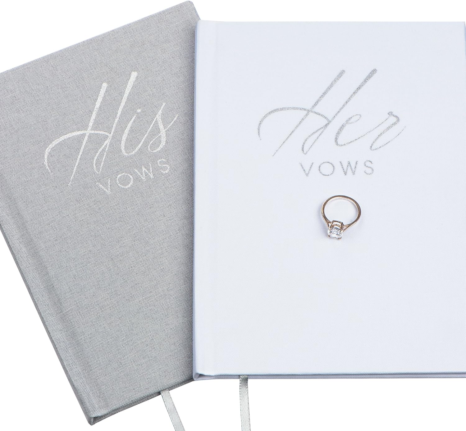 • Includes 2 Vow Books: Satin White HER vows & Linen Grey HIS vows. Size of the Books: 5.125" x 7.25"