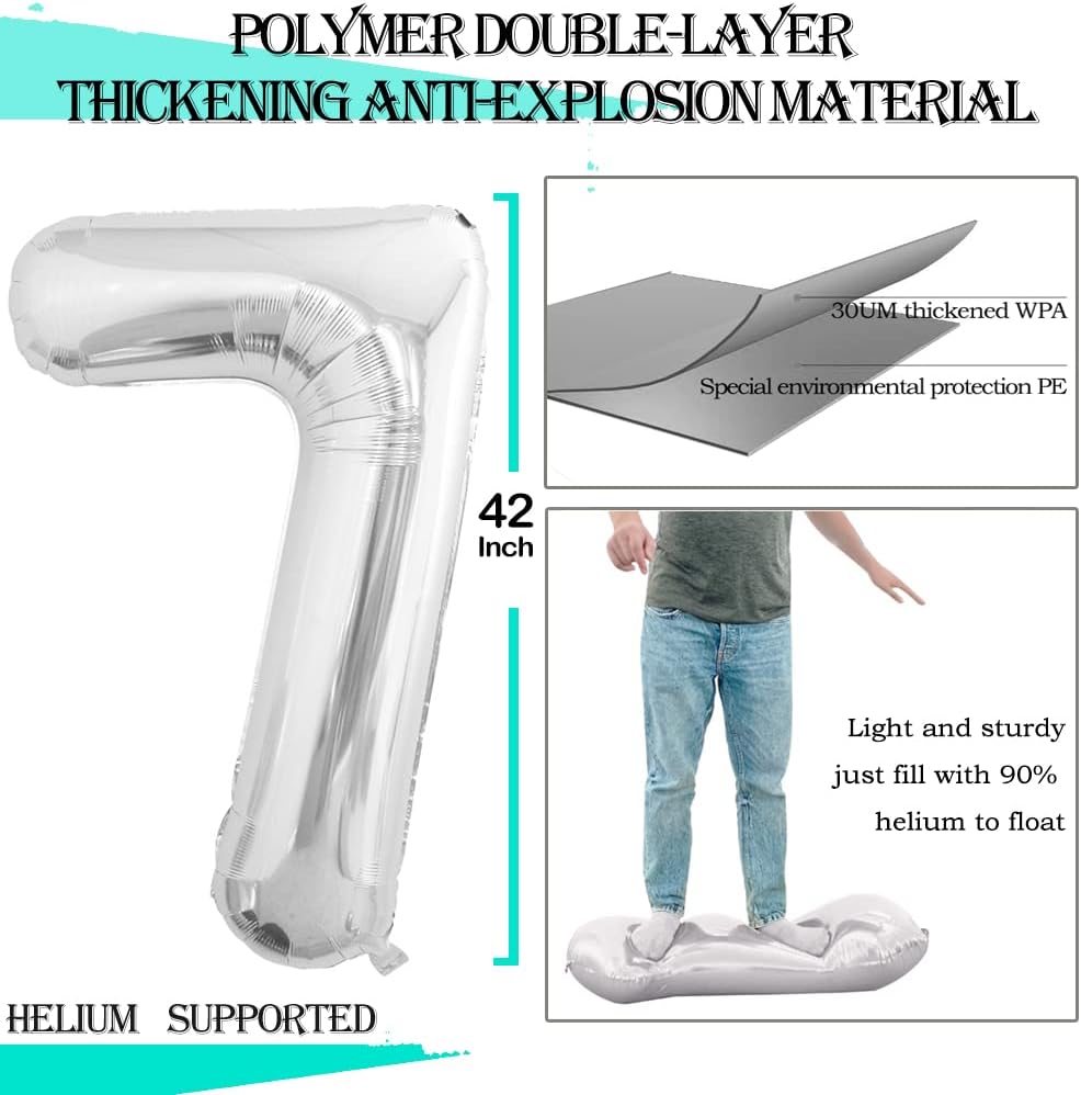 • Package Includes:Number 7 Balloons*3,42 inch,32 inch,16inch each,Straw*1