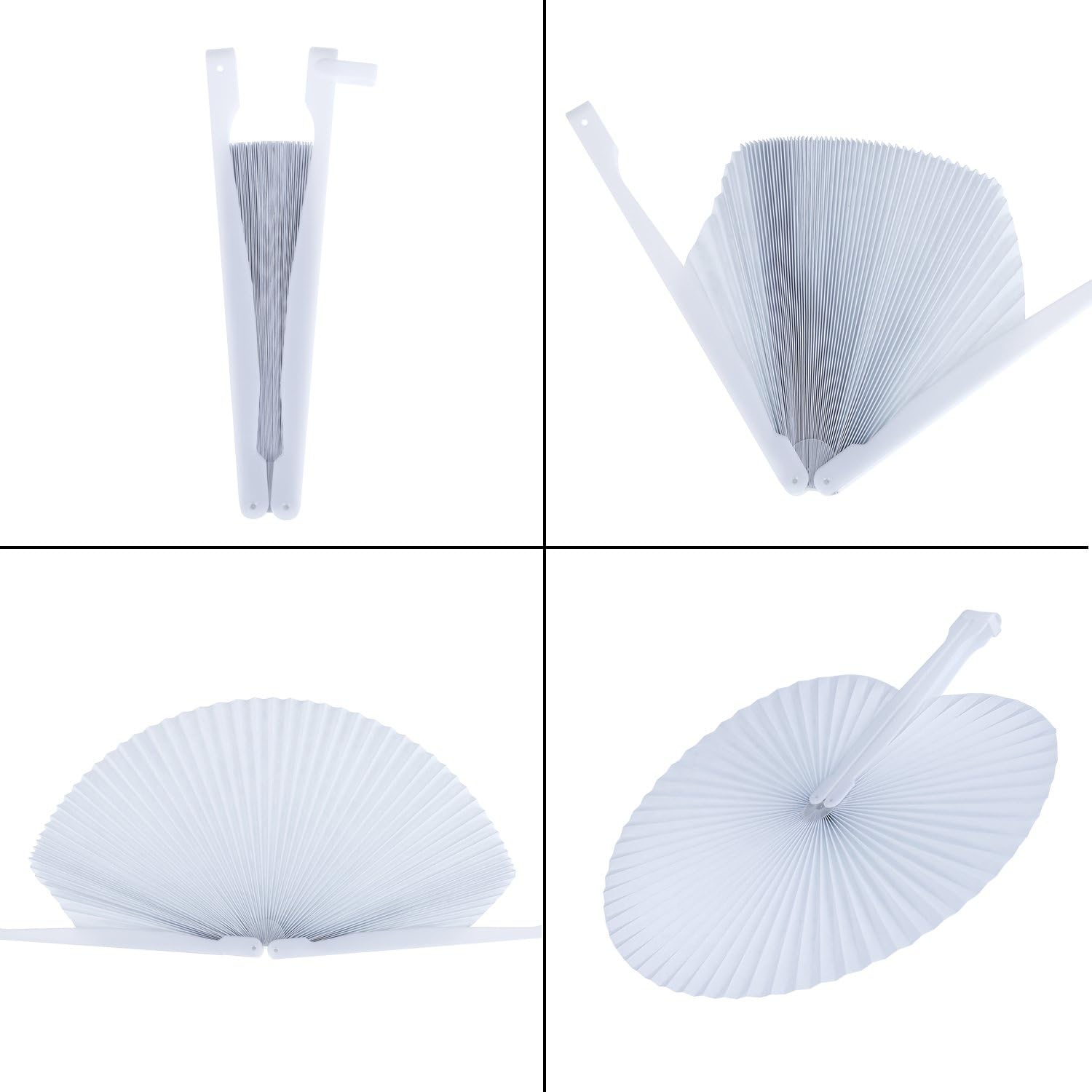Pangda 24 Pack Folding Fans Round Paper Fans Assortment with Plastic Handle for Wedding Favor Party Bag Filler(White)