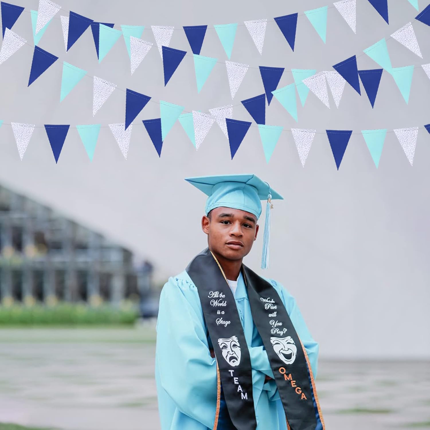 • 💙PACKAGE CONTAINS- 3 string of navy blue sliver triangle banner,each string is 10 feet/3 meters with 26 pieces triangular flags,so total is 9 meters = 30 feet with 78 pieces flags. Size of each flag:14cm x 9cm/5.5" x 3.5" (L x W).