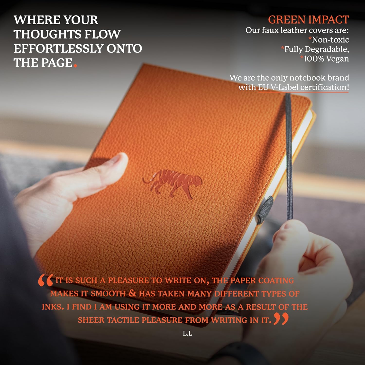• HIGHEST-QUALITY WRITING PAPER: Dingbats Orange Tiger Medium A5 Notebook Journal has 192 pages-96 sheets of no bleed, smooth writing, Cream 100gsm, acid-free fountain-pen friendly, perforated plain paper in a flat lay design
