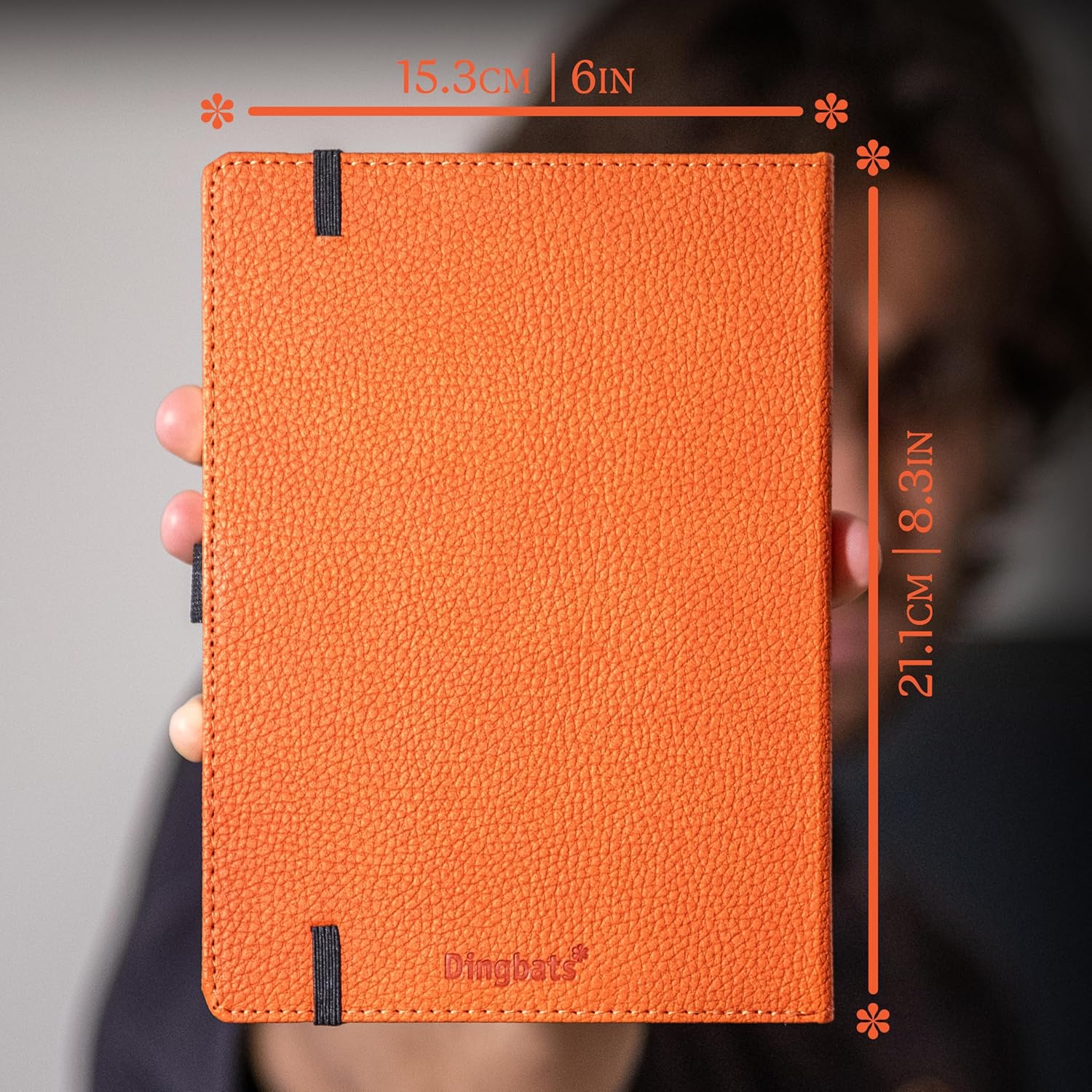 • A5 NOTEBOOK WITH LOTS O' FEATURES: Dingbats notebooks ooze quality - this hardcover bound leather notebook is crafted with PU vegan leather, micro-perforated cream 100gsm pages, an elastic closure and pen holder. It's complete with animal footprint end sheets, and an inner pocket for a little added detail - the perfect gifts for men and women, these travel essentials are a gift that keep on giving