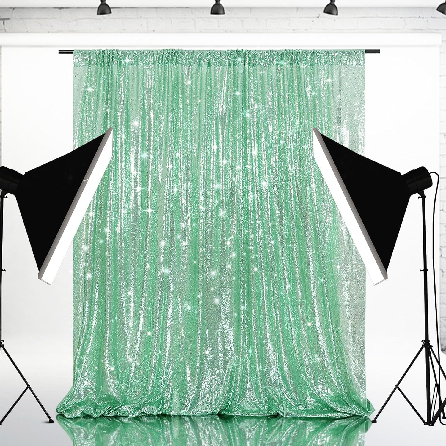 Eternal Beauty Mint Green Sequin Backdrop, 4x7 Ft Glitter Background Curtains for Shimmer Photography Party Wedding Birthday Back Drop Decor