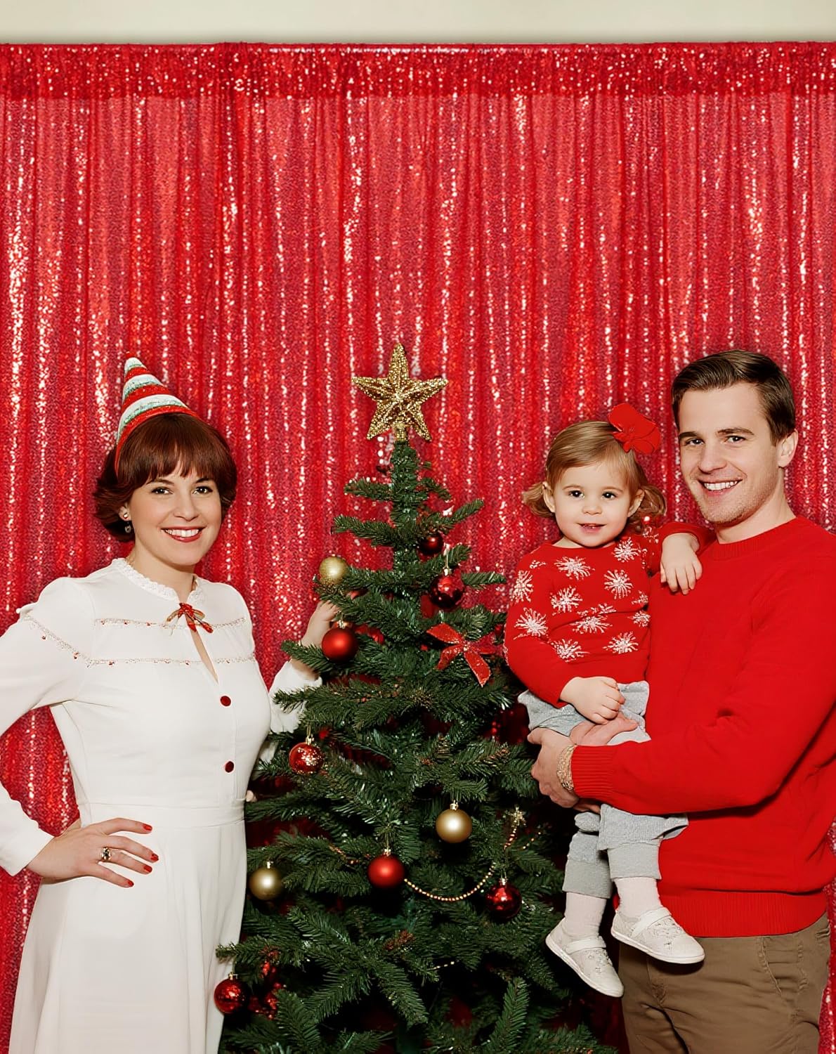 Eternal Beauty Red Sequin Backdrop, 10x10 Ft Glitter Background Curtains for Christmas Shimmer Photography Party Wedding Birthday Back Drop Decor