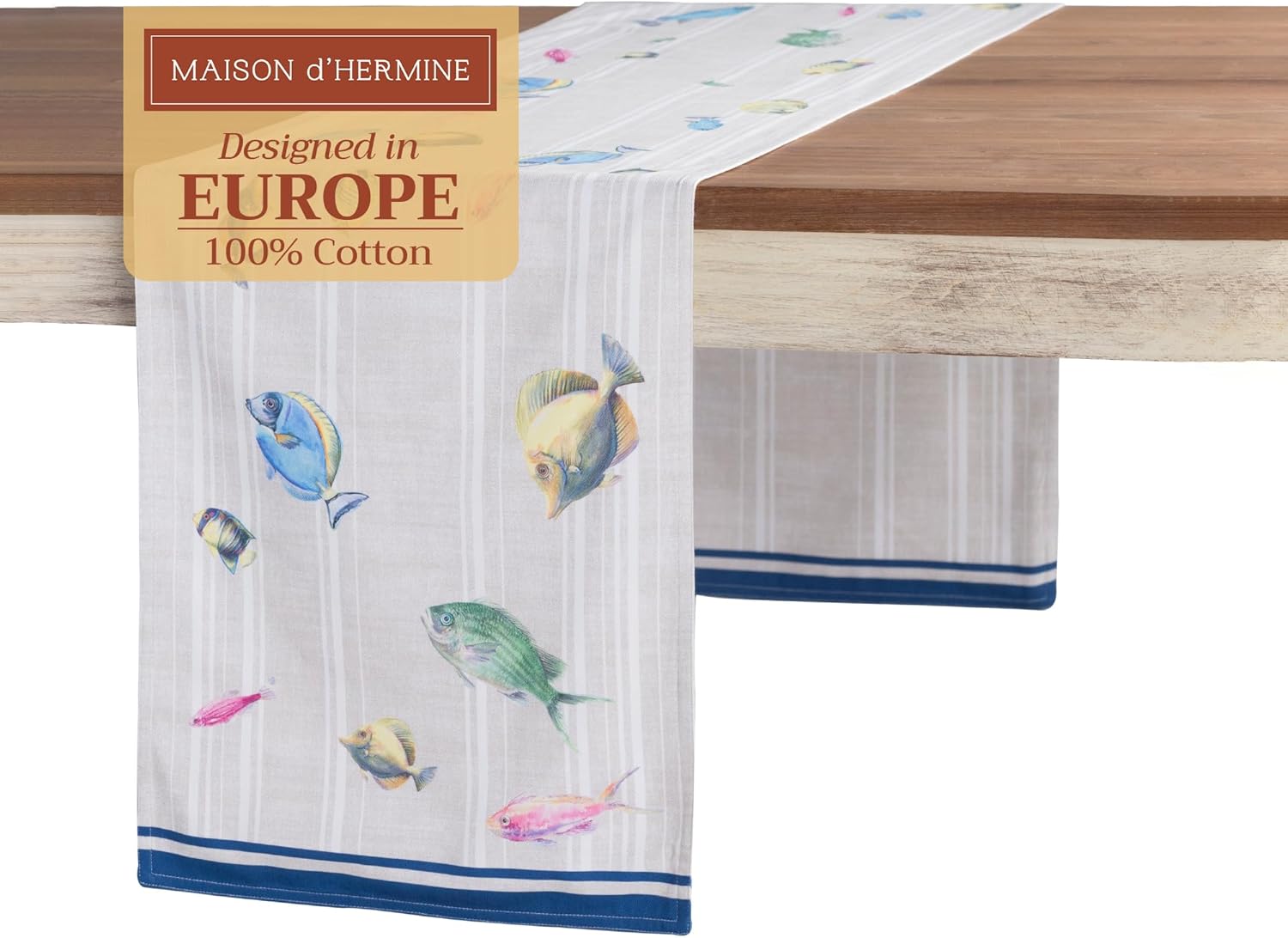 Maison d' Hermine Table Runner 100% Cotton Double Layer Table Runners 108 inches Long Decorative for Home Kitchen Dining Party Baby Shower Wedding Bridal Shower Spring Summer (Poisson, 14.50" x 108")
