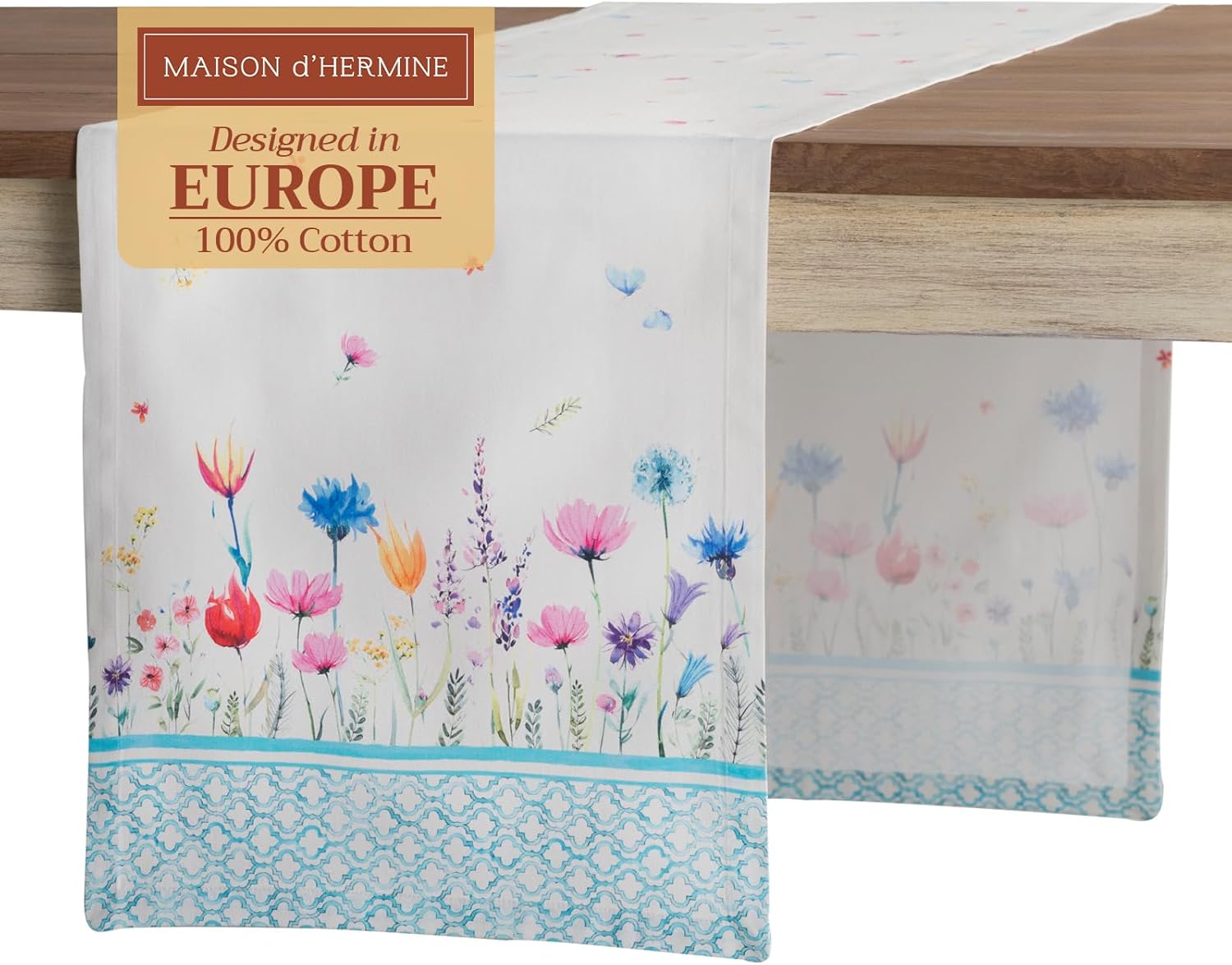 Maison d' Hermine Table Runner 100% Cotton Single Layer Table Runners 72 inches Long Decorative for Home Kitchen Dining Party Wedding Bridal Shower Spring Summer (Flower in The Field, 14.50" x 72")