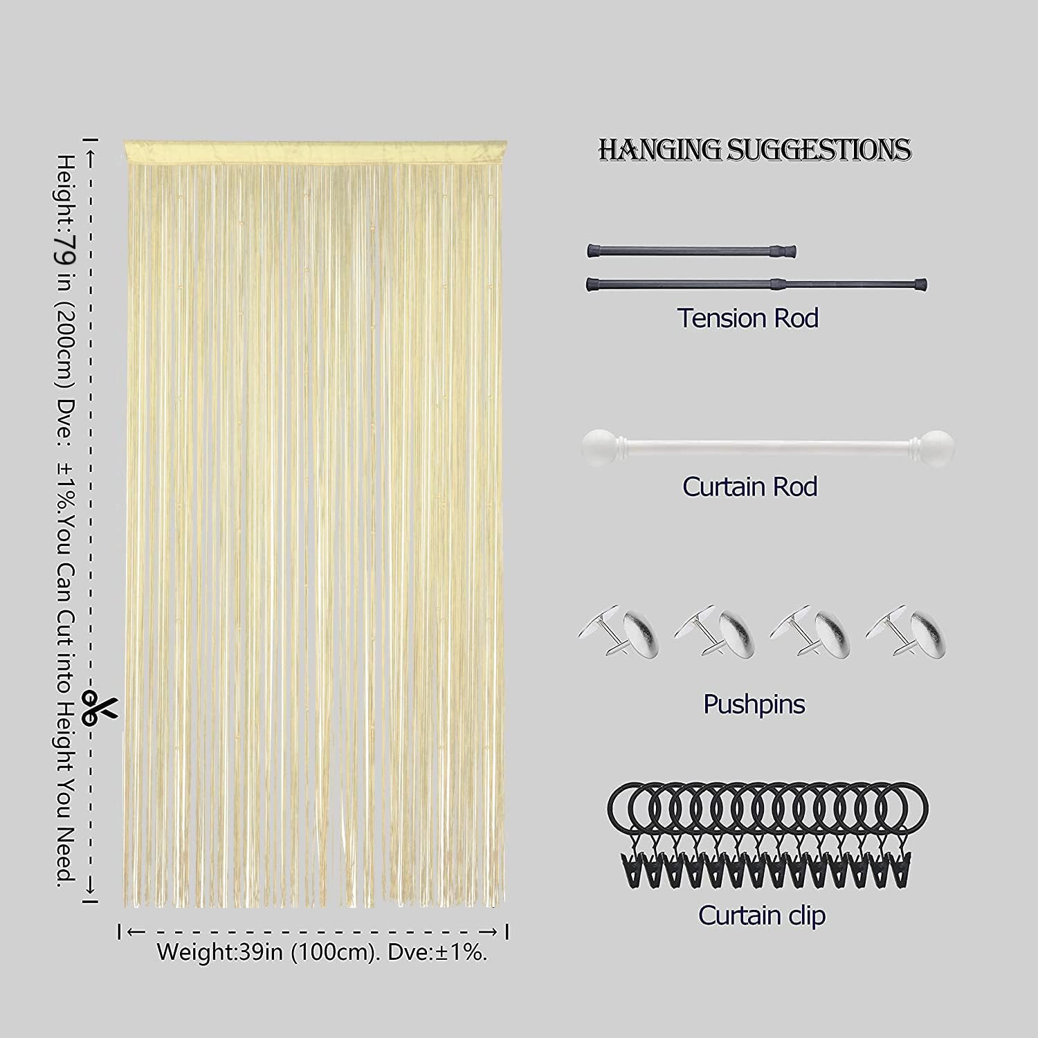 • The door curtains hang beautifully and let light in,meanwhile keep privacy,look pretty and delicate.If you need the strings to be dense,we suggest buy 2 or more.