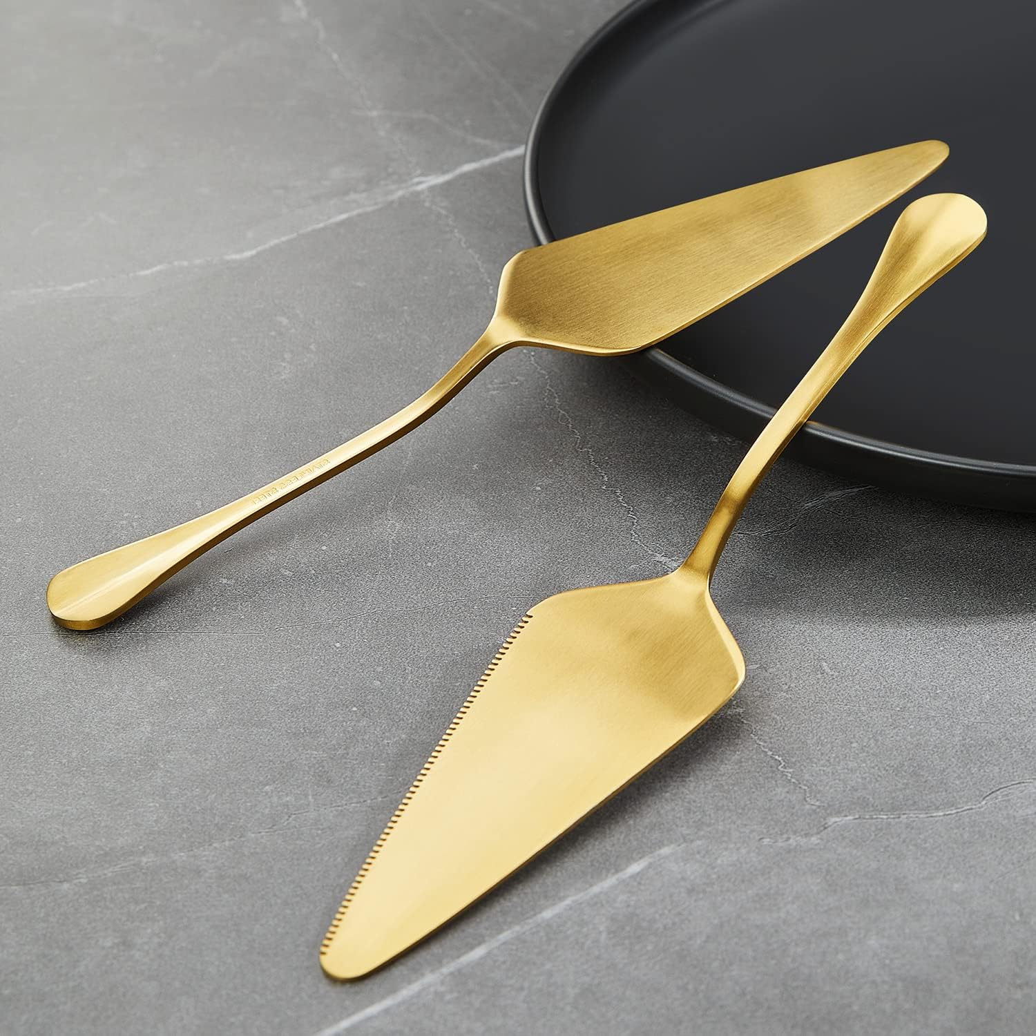 Gold Pie Server Stainless Steel, HOFTEN Cake Pie Pastry Server Set of 5, Professional Dessert Server For Cake Cheese Pie Pizza and more, Serrated Cake Knife (8.93inch Length)