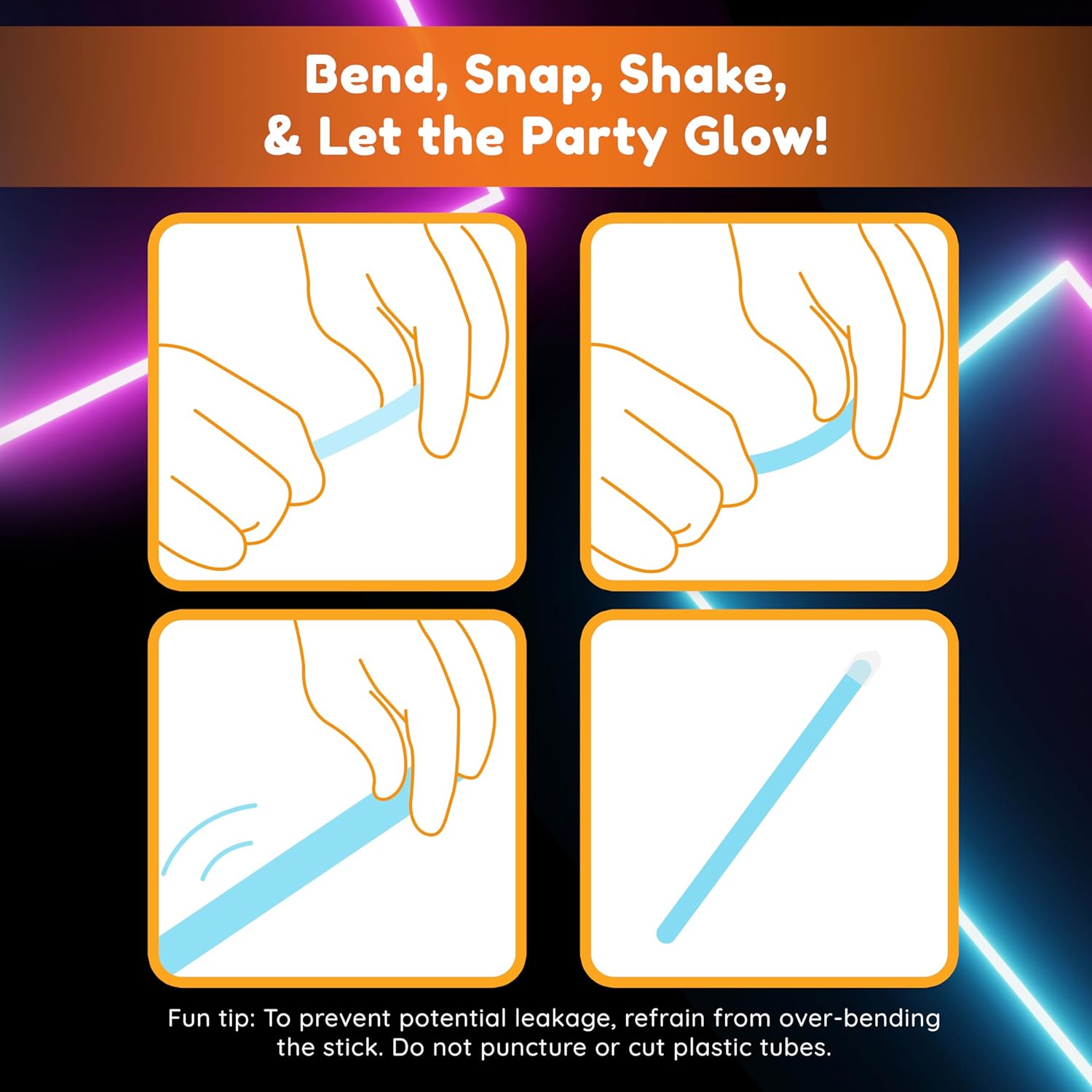• EASY TO USE: bend, snap and shake the stick and it will glow.