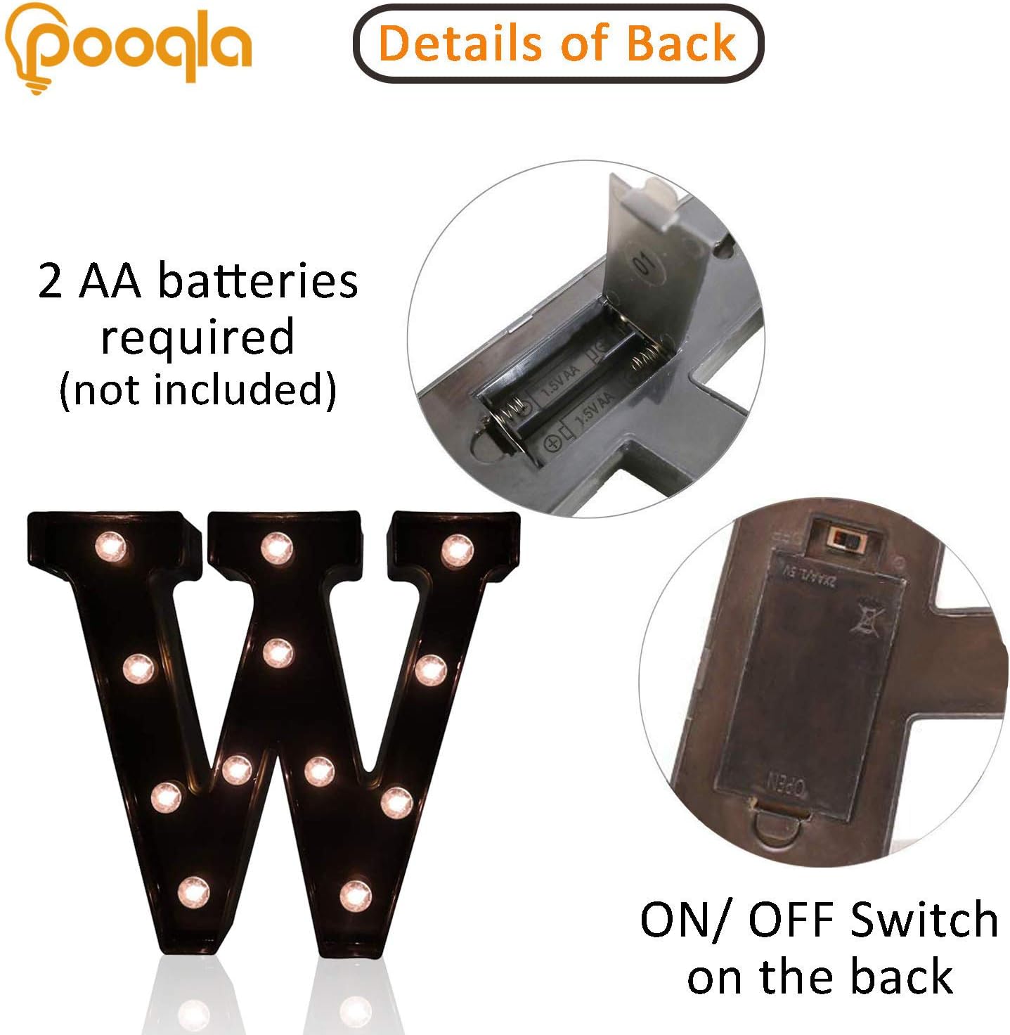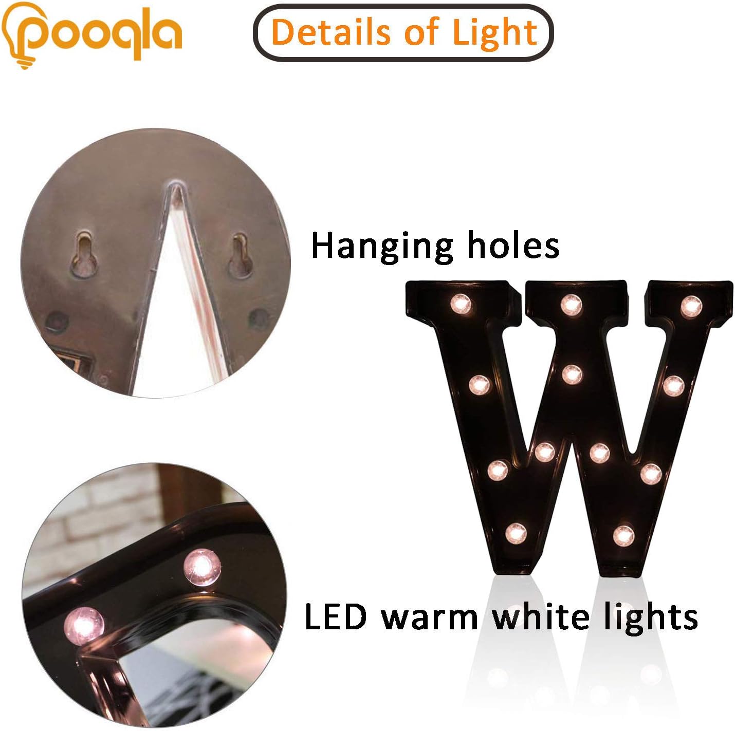 Decorative LED Illuminated Letter Marquee Sign - Alphabet Marquee Letters with Lights For Wedding Birthday Party Christmas Night Light Lamp Home Bar Decoration W, Black