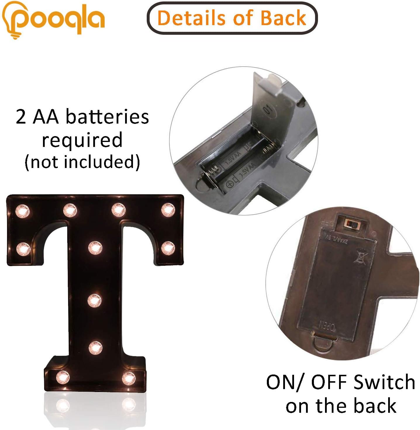 Decorative LED Illuminated Letter Marquee Sign - Alphabet Marquee Letters with Lights For Wedding Birthday Party Christmas Night Light Lamp Home Bar Decoration T, Black