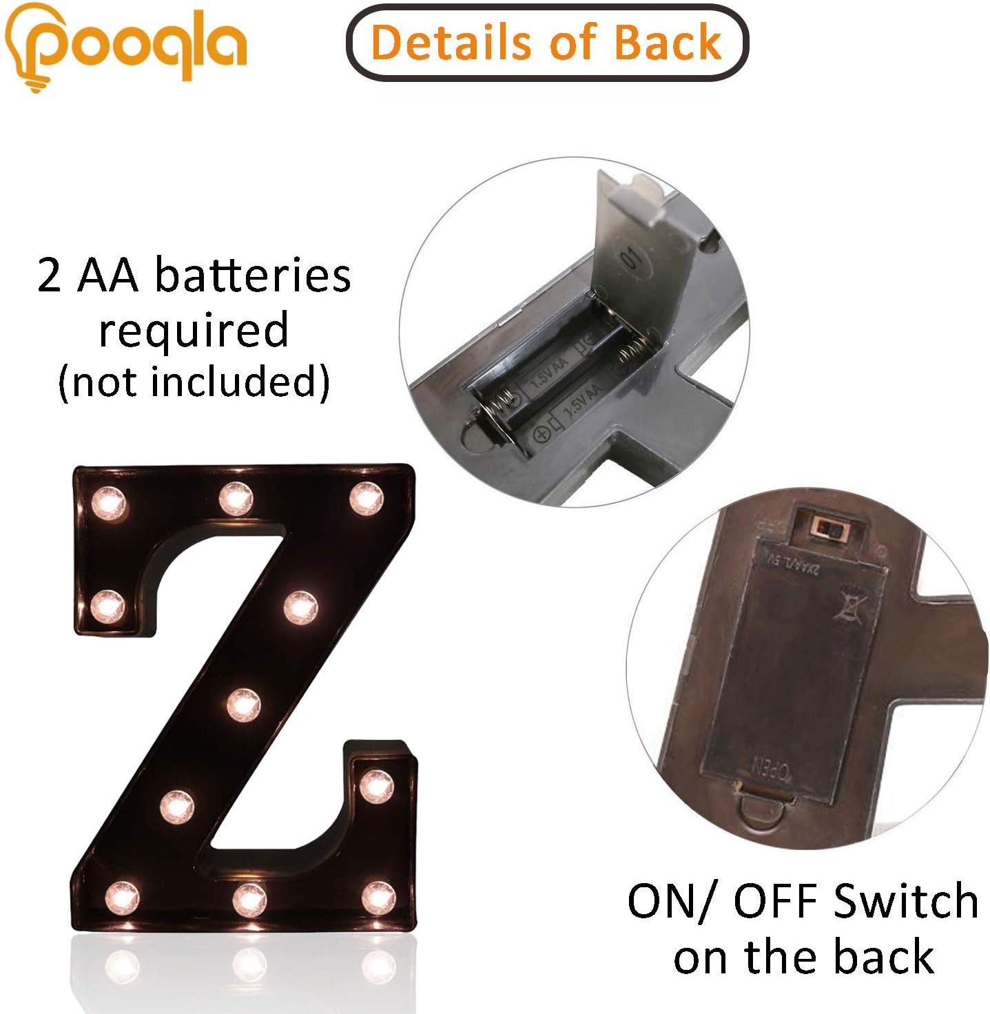 Decorative LED Illuminated Letter Marquee Sign - Alphabet Marquee Letters with Lights For Wedding Birthday Party Christmas Night Light Lamp Home Bar Decoration Z, Black