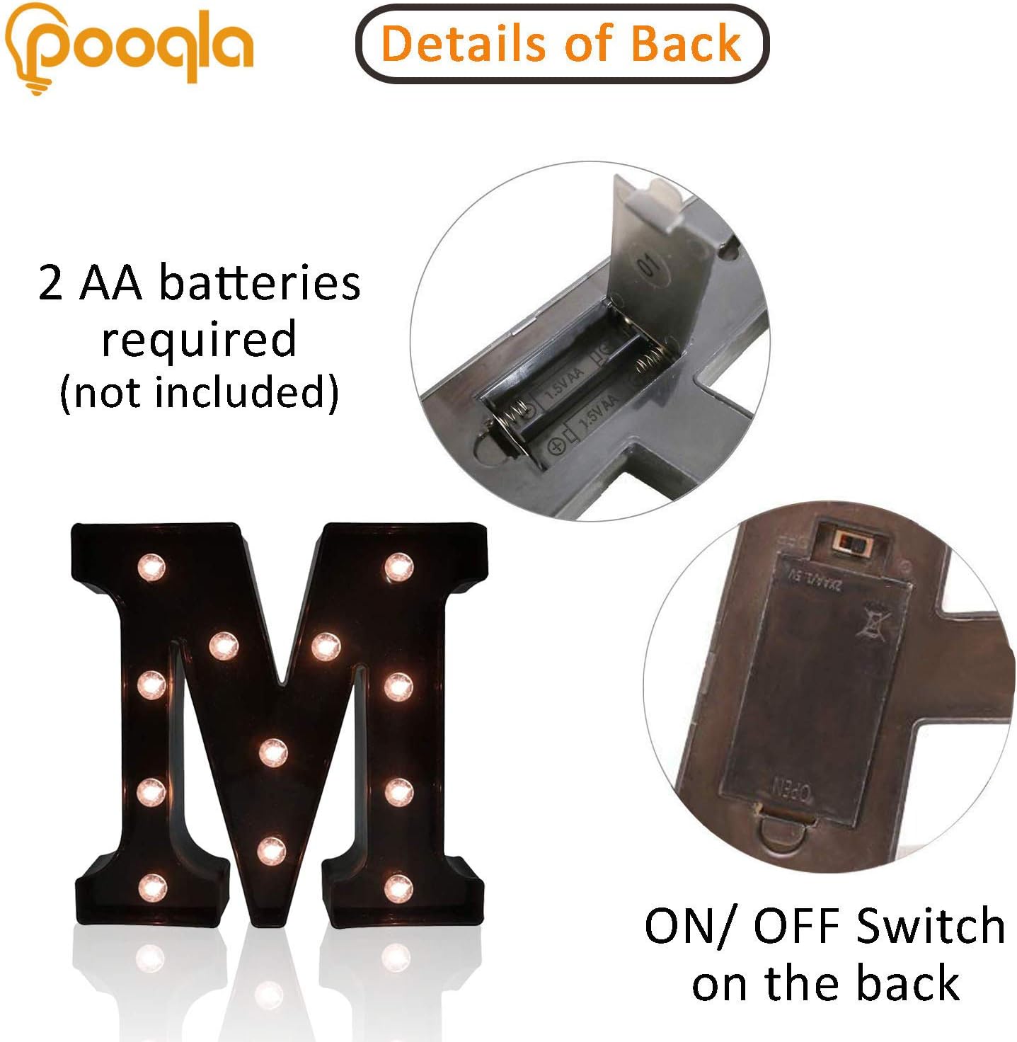 Decorative LED Illuminated Letter Marquee Sign - Alphabet Marquee Letters with Lights For Wedding Birthday Party Christmas Night Light Lamp Home Bar Decoration M, Black