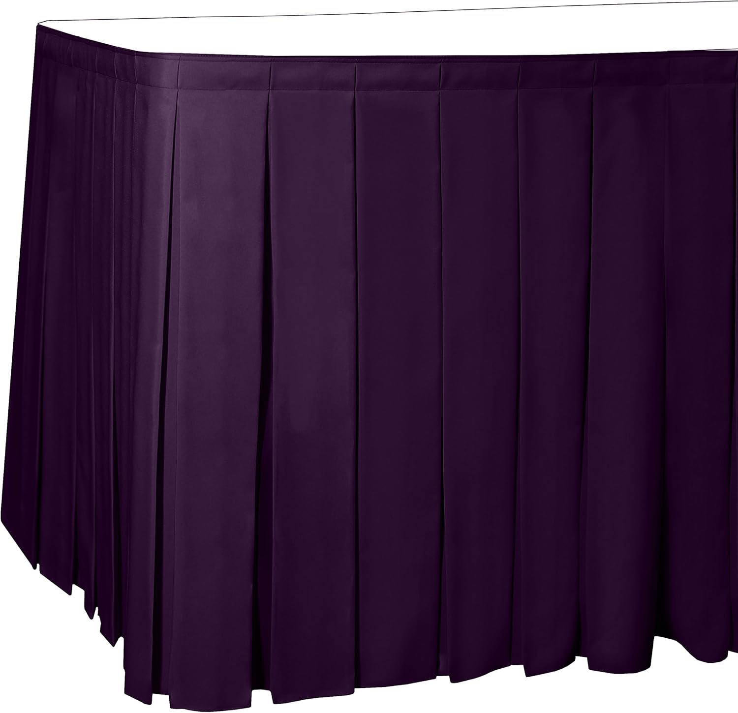 Ultimate Textile Pleat Polyester Fabric Table Skirt - Machine Washable Flame Resistant with Clips for Events, Weddings & Trade Shows, Cut & Sewn in Paterson, NJ - Aubergine, 14' Box Pleat