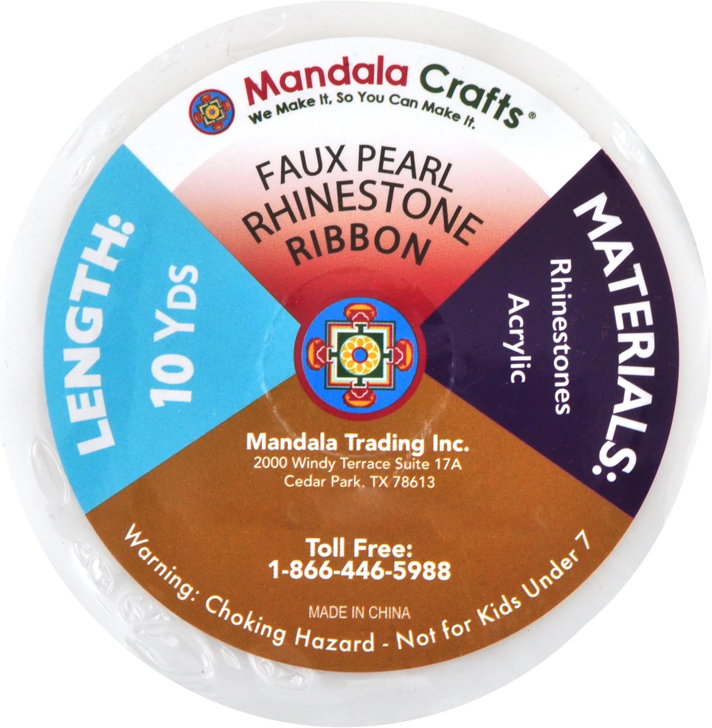 Mandala Crafts 0.25 Inch Crystal Faux White Pearl Beads Roll - 10 Yards Strand of Rhinestones Fake Pearls Chain Garlands Spool String for Christmas Tree, Wedding, Party, Vases, DIY Decoration