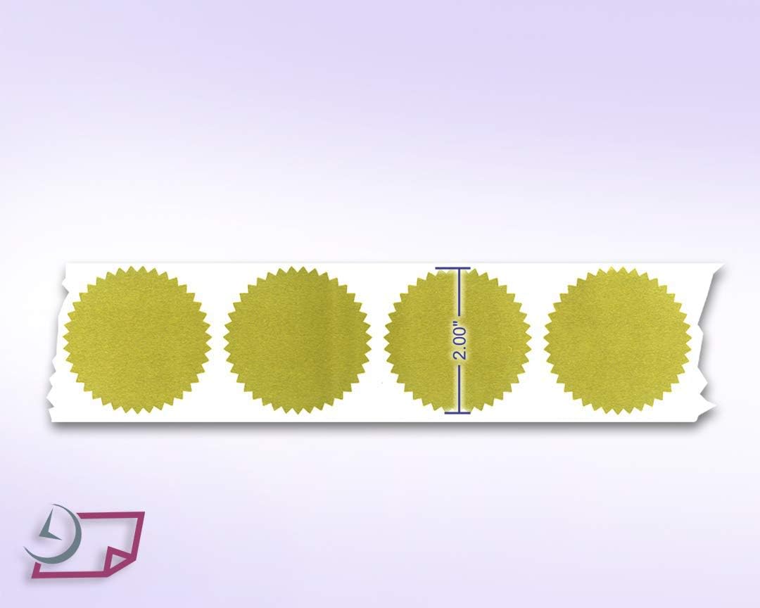 • EXCELLENT VALUE – Gold Starburst Paper Labels with Serrated Edges are sold on rolls containing 250 Labels and measures 2 Inches, each of them featuring a gold metallic glossy color! Each roll comes on a 3" core. Permanent adhesive labels ensures that your Labels will stay just where you need them.