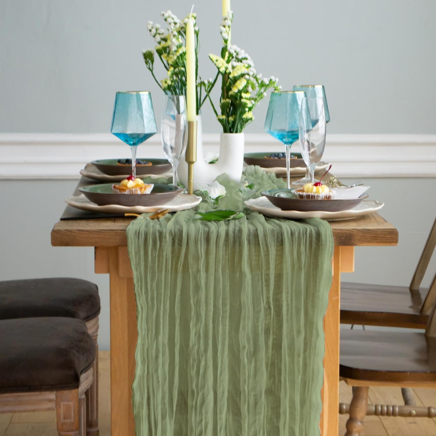 Gauze Table Runner Bulk sage Green Set of 2 Items, 12 ft Cheesecloth Runner for Table Rustic Table Runner 142 in for Boho Wedding Table Linen Cheesecloth Runner sage Green Party Décor