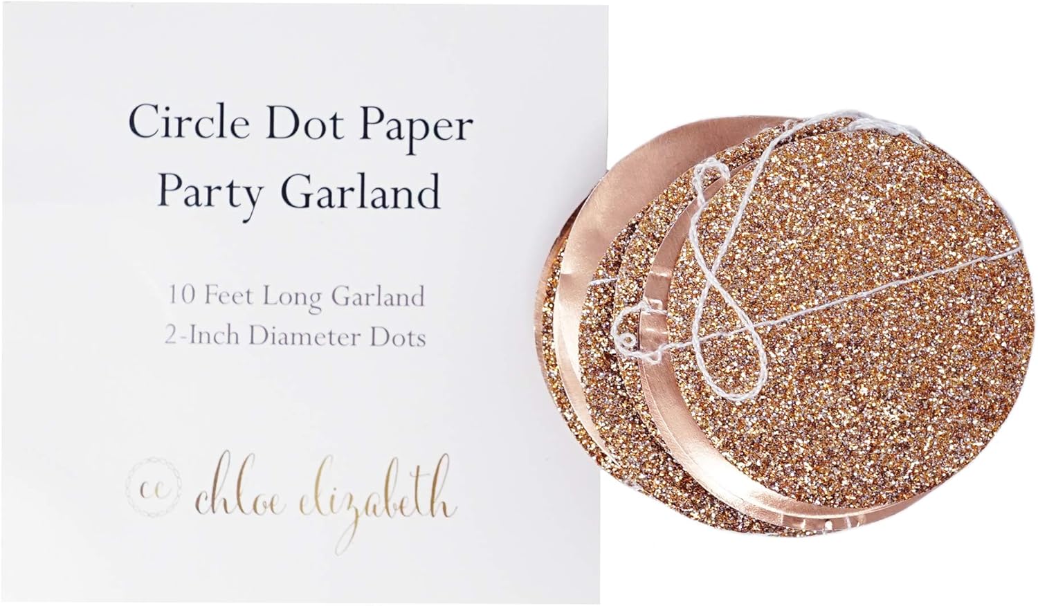 Circle Dots Paper Party Garland Streamer Backdrop (10-Pack, 10 Feet Per Garland, 100 Feet Total) - Rose Gold Glitter
